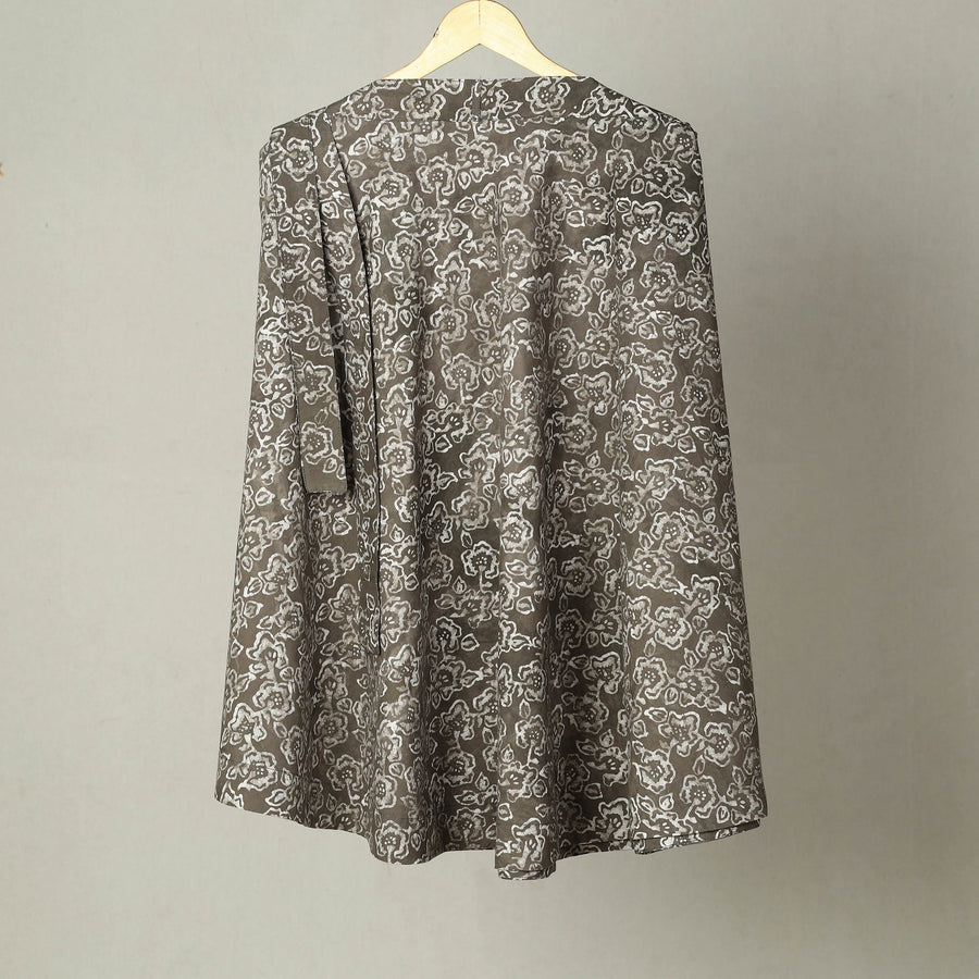 Brown - Cotton Hand Block Batik Print A-Line Kurta for women 15
