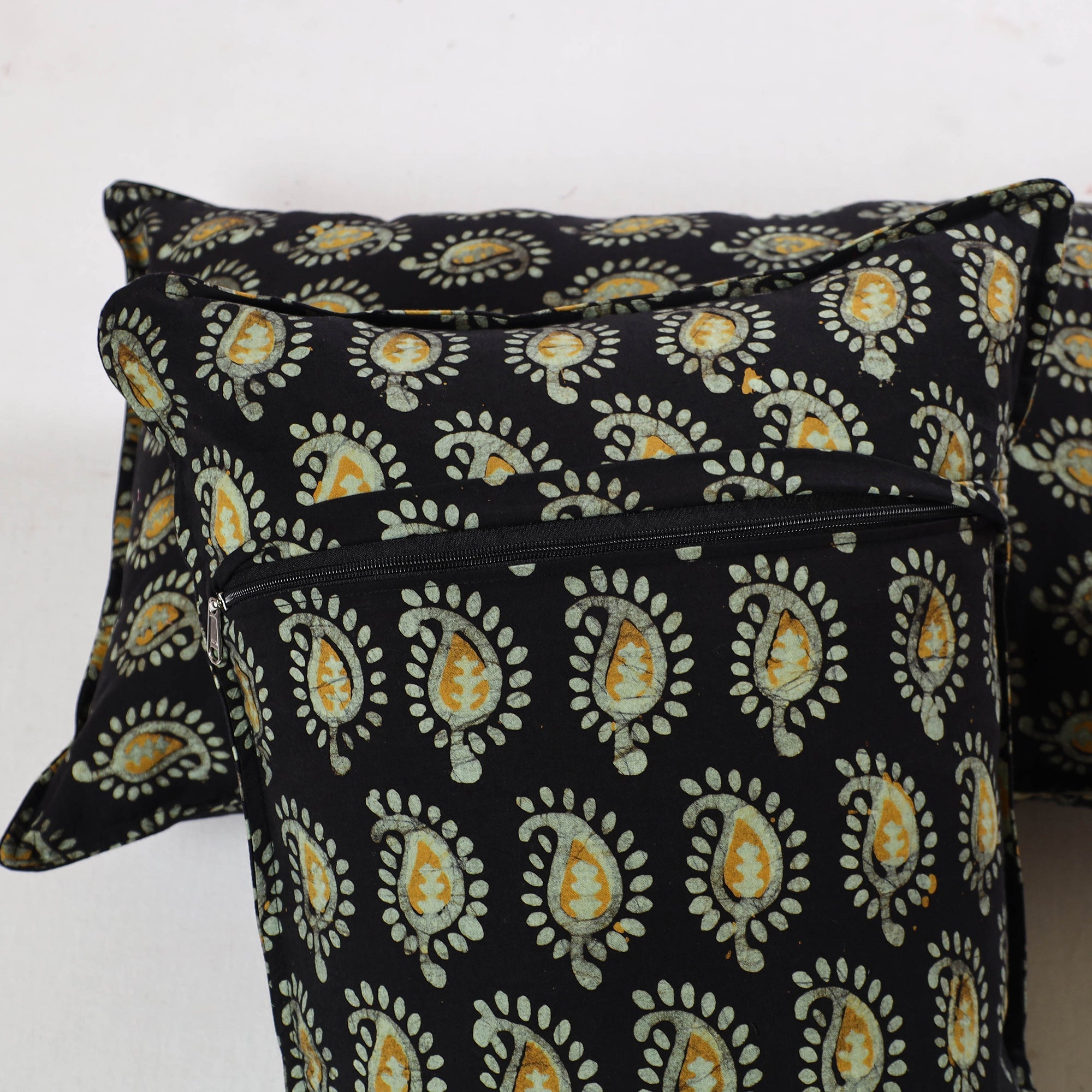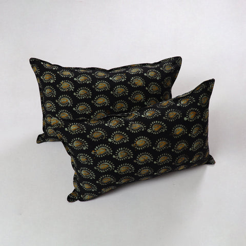 Celebrate traditional artistry with this set of 2 black hand batik printed cotton pillow cover, handmade using the wax-resist dyeing technique. A craft passed down through generations, batik showcases intricate patterns and vibrant colours. Made from durable, eco-friendly cotton, these pillow covers add cultural depth and elegance to your living space. Support artisan heritage and explore iTokri for more handcrafted treasures that bring timeless charm to your home.