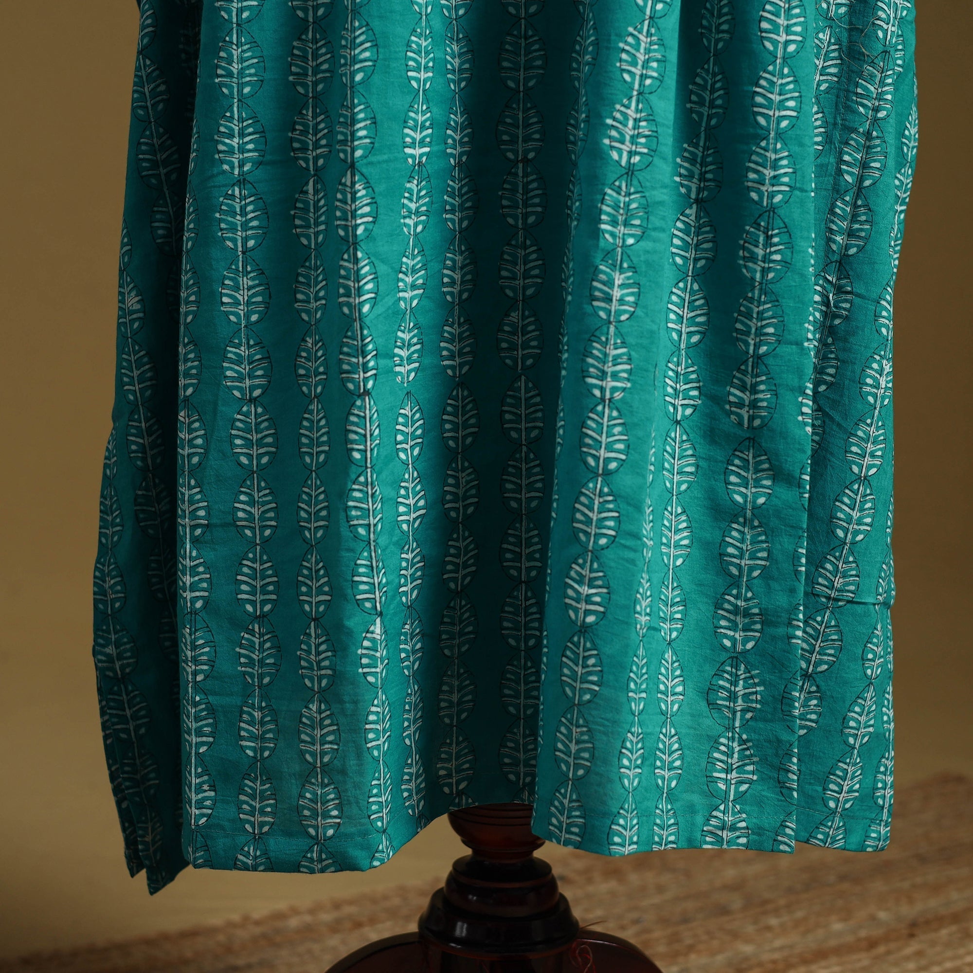 Blue - Hand Block Akola Print Long Kaftan with Tie-Up Waist 21