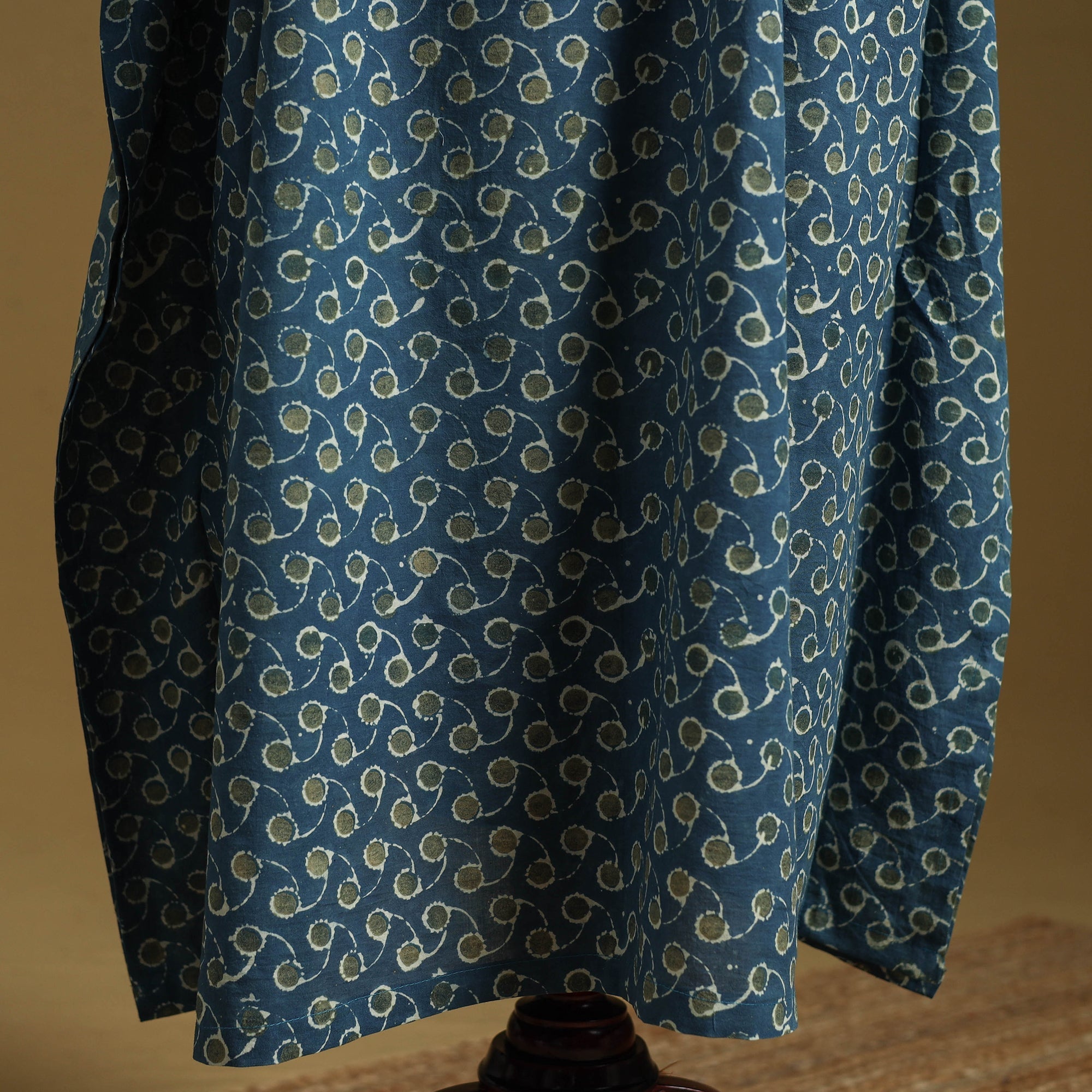 Blue akola long kaftan is made from naturally dyed hand block printed cotton using traditional akola techniques. The fabric stays breathable and easy on the skin. Its relaxed fall, adjustable waist tie and roomy cut offer a comfortable, flattering fit. Ideal for holidays, casual outings or evening wear.