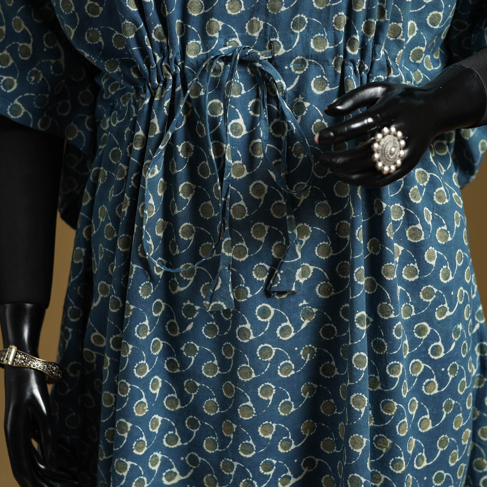 Blue - Hand Block Akola Print Long Kaftan with Tie-Up Waist 21