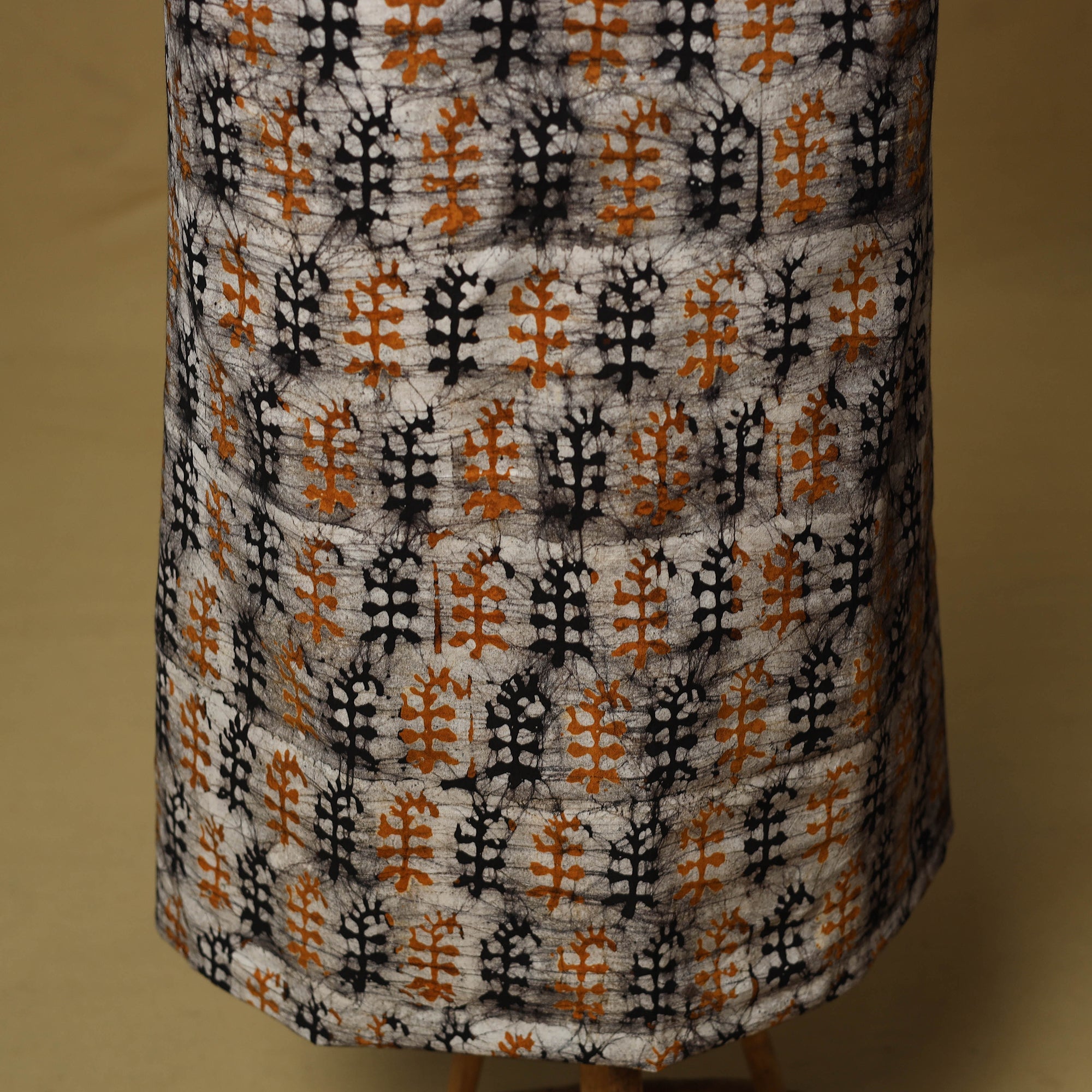 Hand block batik print cotton 2pc unstitched dress material made by skilled artisans from Kutch. Crafted using the centuries-old wax-resist dyeing technique, this set includes kurta fabric and bottom fabric, along with a matching handmade rubber band/scrunchie that adds a coordinated look. Easy to stitch and comfortable to wear, this set works well for daily wear and casual outings.