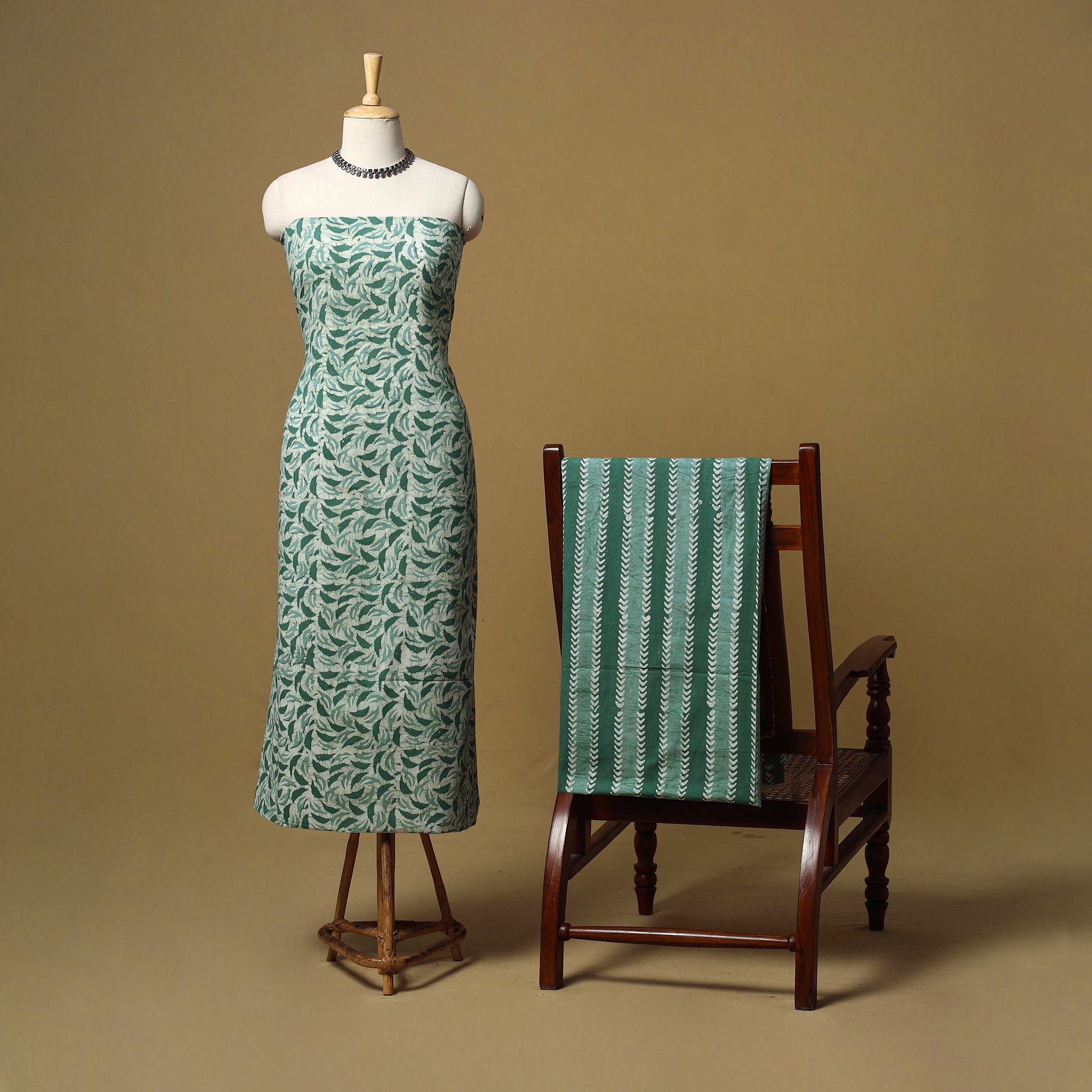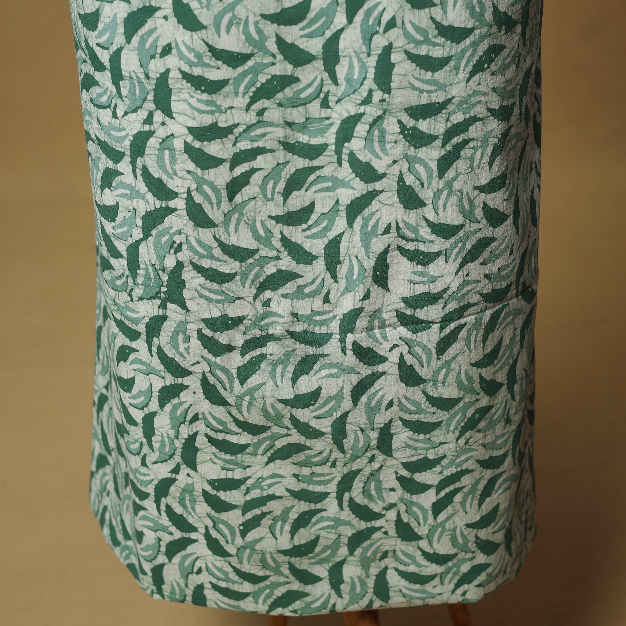 Hand block batik print cotton 2pc unstitched dress material made by skilled artisans from Kutch. Crafted using the centuries-old wax-resist dyeing technique, this set includes kurta fabric and bottom fabric, along with a matching handmade rubber band/scrunchie that adds a coordinated look. Easy to stitch and comfortable to wear, this set works well for daily wear and casual outings.