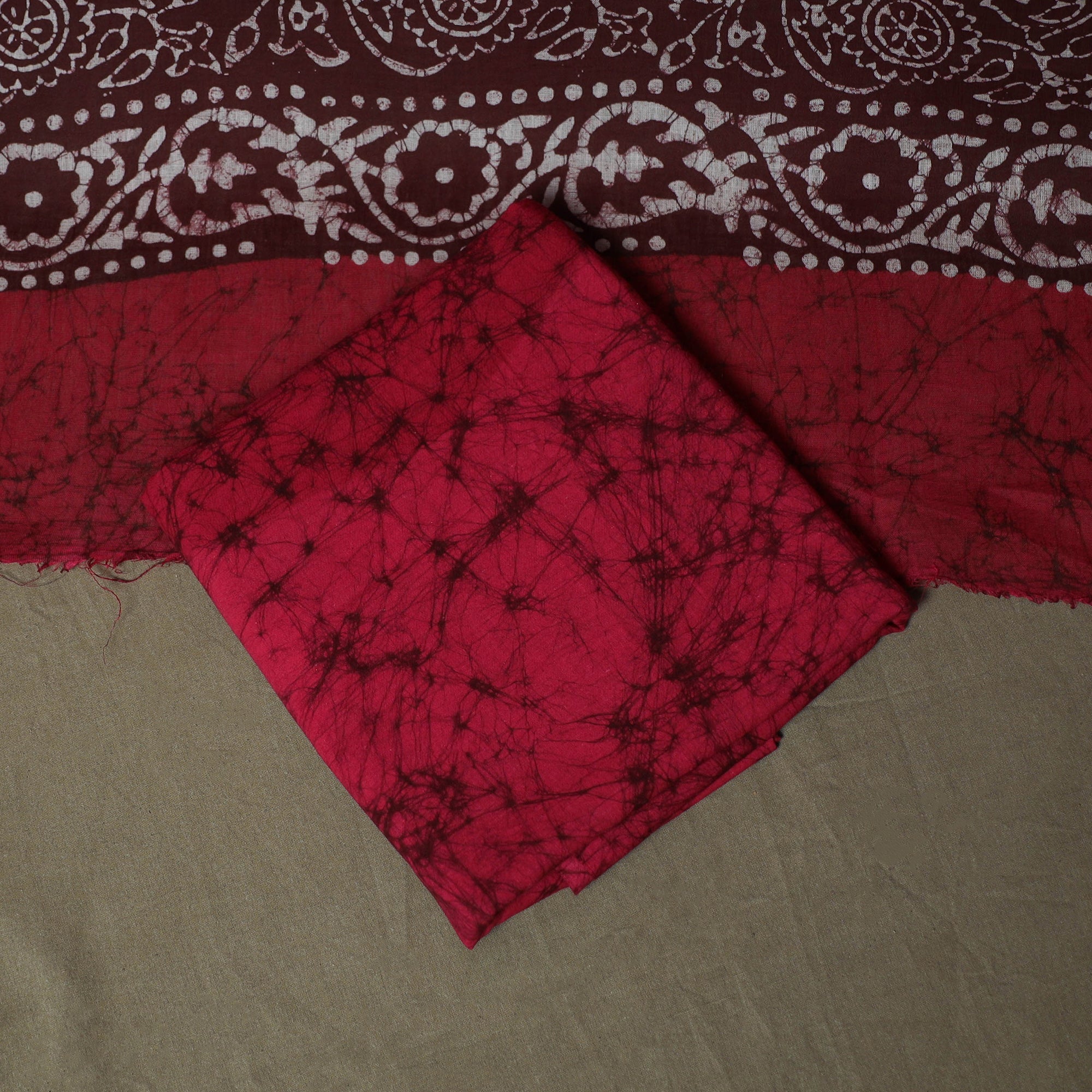 Maroon - Hand Block Batik Print Cotton 3pc Unstitched Dress Material 37