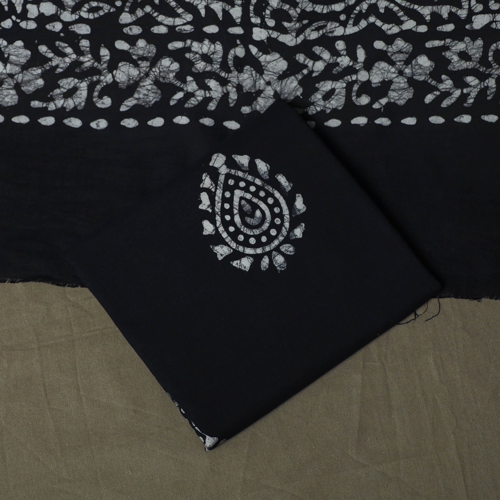 Black - Hand Block Batik Print Cotton 3pc Unstitched Dress Material 51