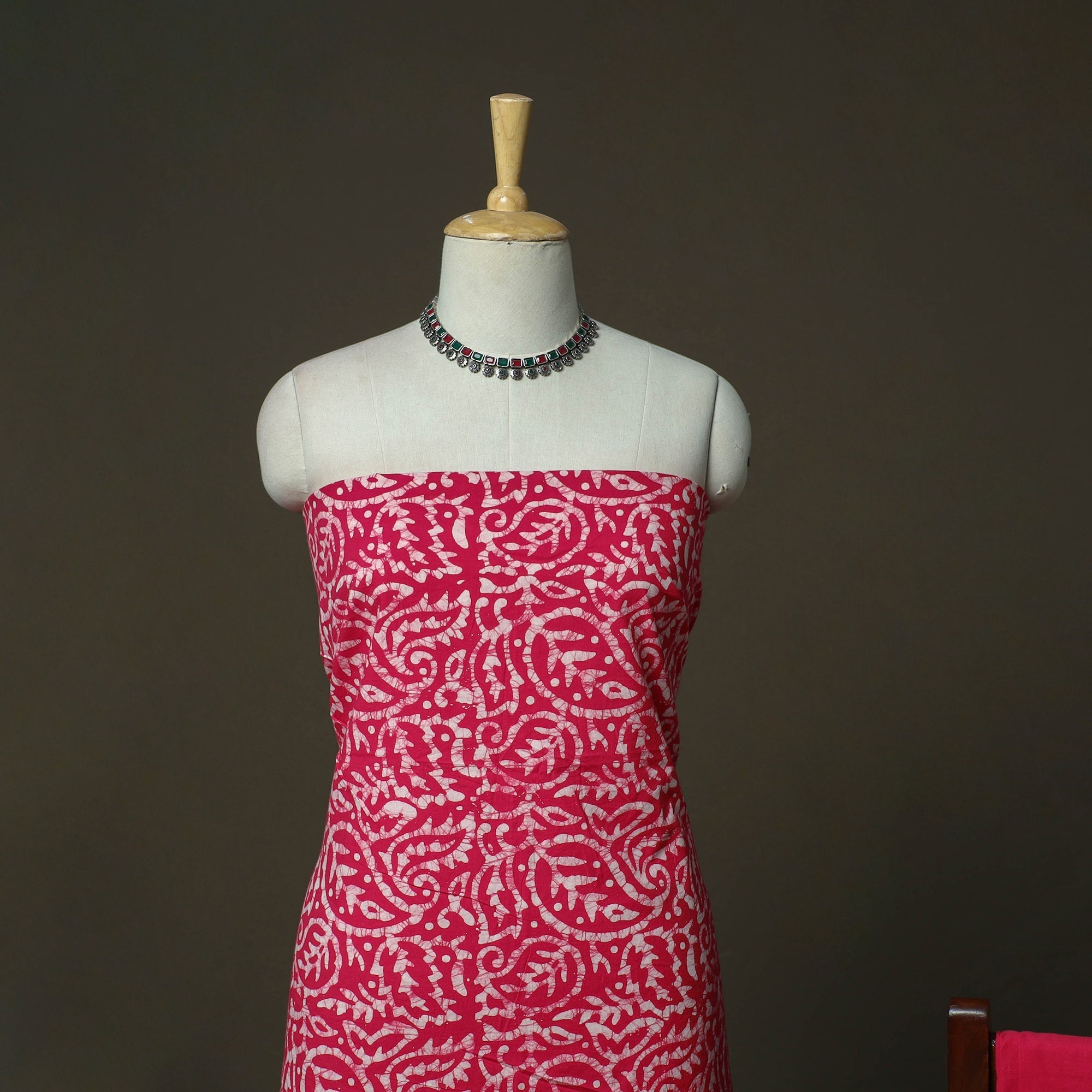 Pink - Hand Block Batik Print Cotton 3pc Unstitched Dress Material 59