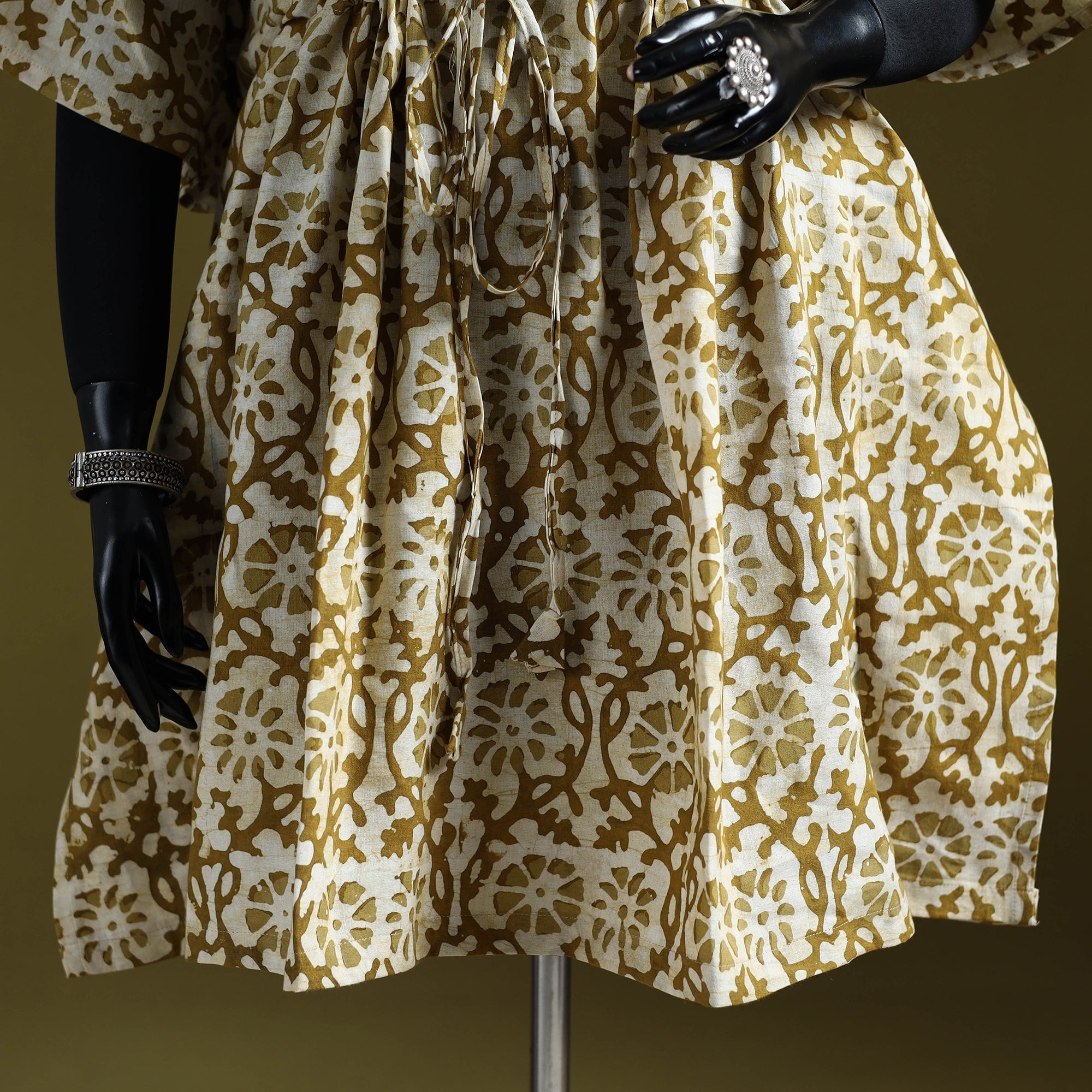 Beige - Hand Block Batik Print Cotton Medium Kaftan 28