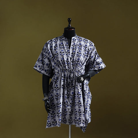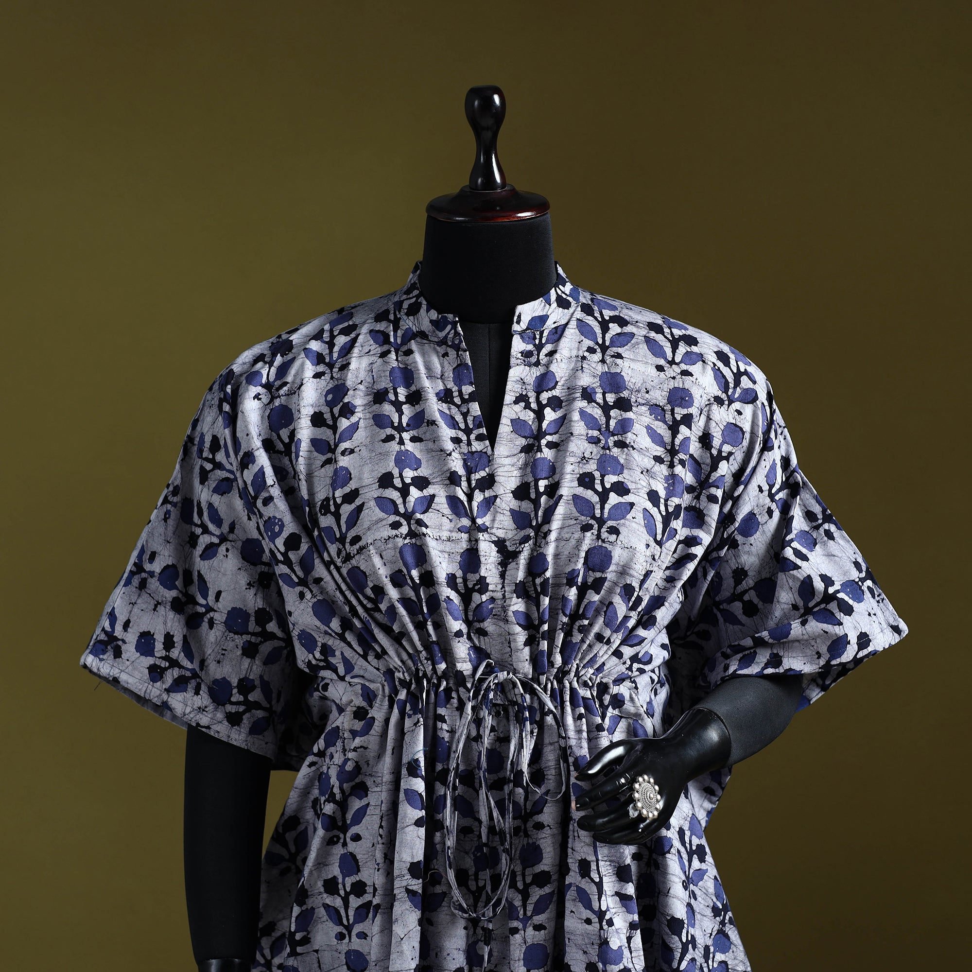 Blue - Hand Block Batik Print Cotton Medium Kaftan 40