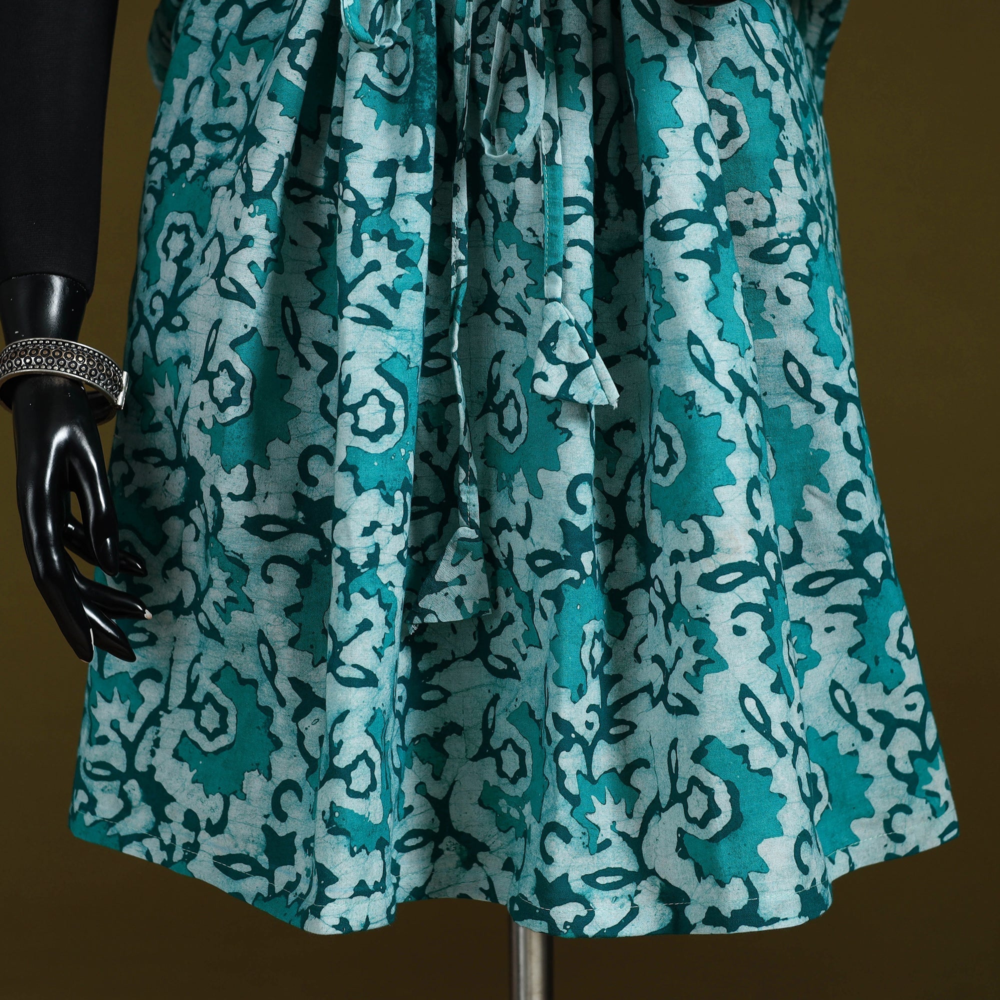 Batik is a very famous technique of wax-resist dyeing applied to whole cloth. The traditional designs and motifs in Indian batik are exceptional. It is a type of resist printing process wherein wax is applied to the fabric in specific areas.