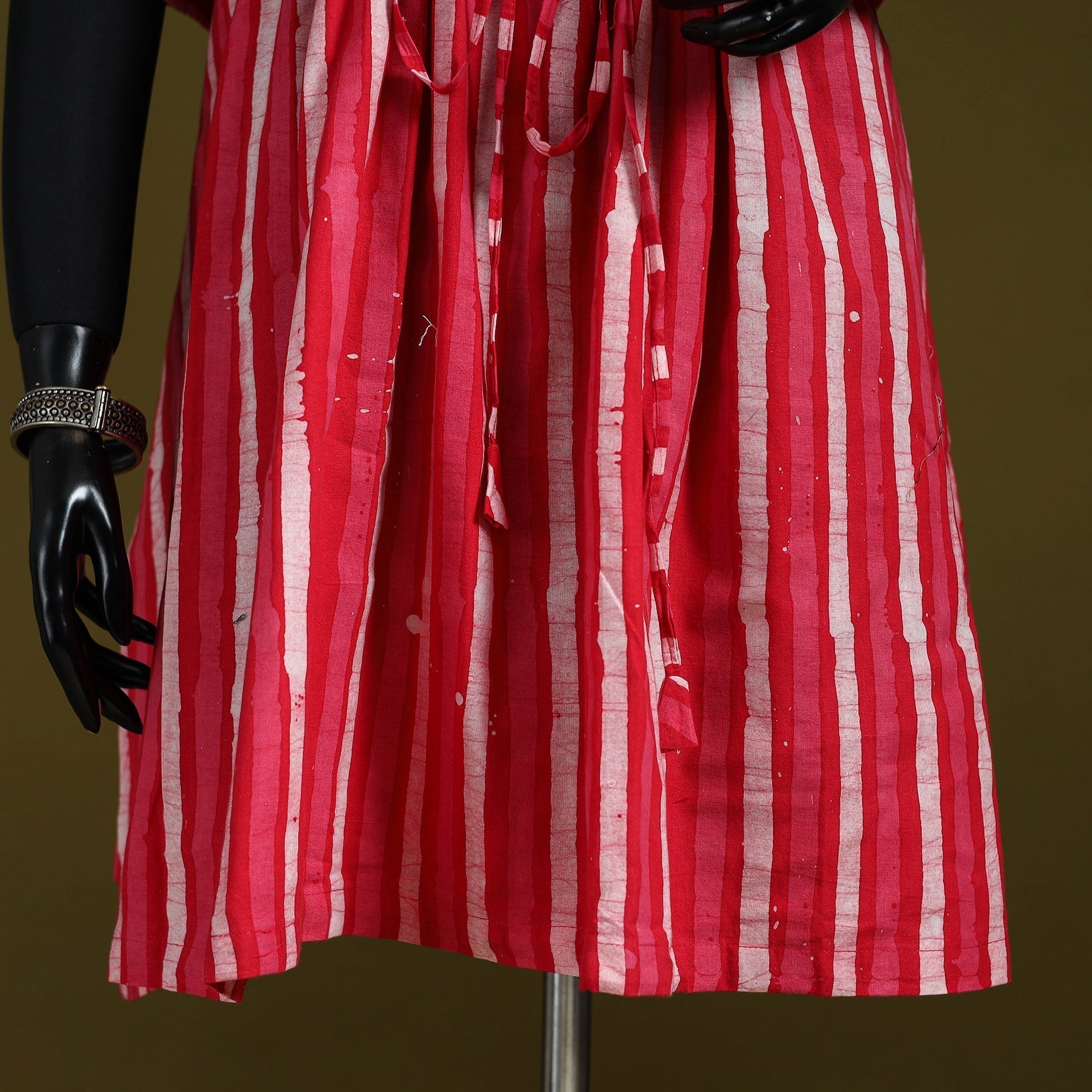 Batik is a very famous technique of wax-resist dyeing applied to whole cloth. The traditional designs and motifs in Indian batik are exceptional. It is a type of resist printing process wherein wax is applied to the fabric in specific areas.