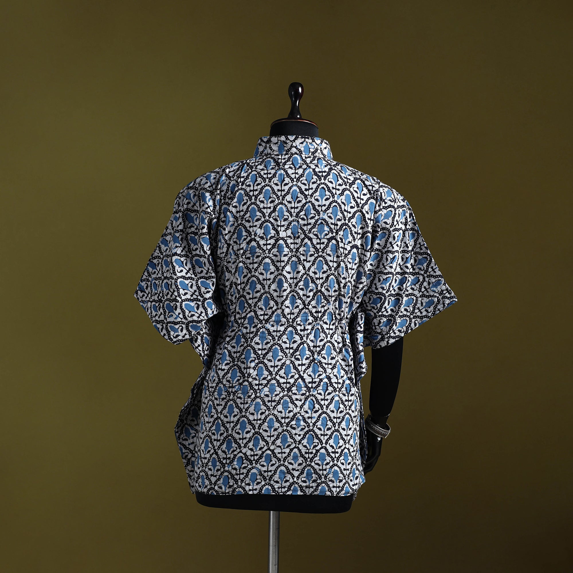 Blue - Hand Block Batik Print Cotton Short Kaftan 21