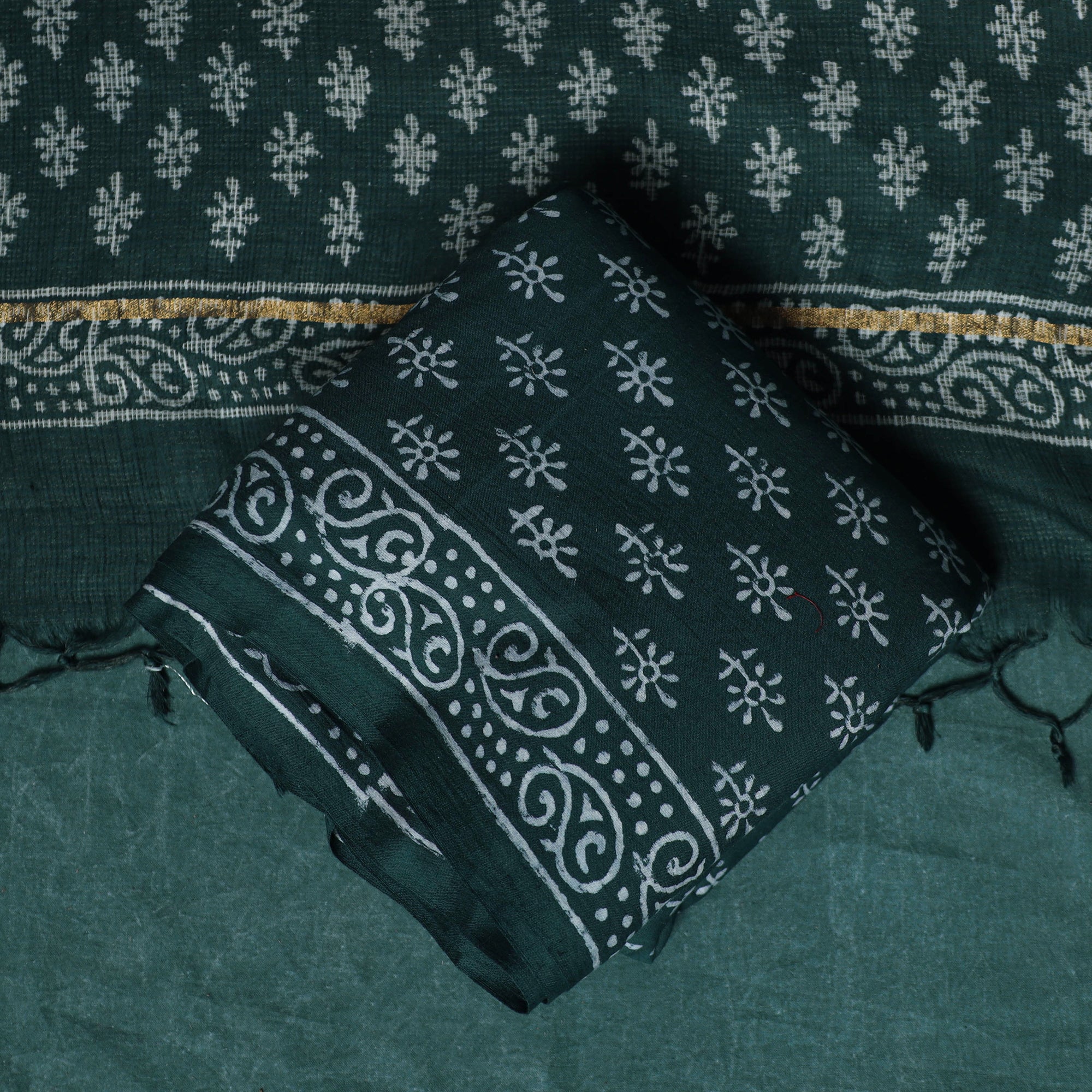 • Hand block jaipur print cotton 3pc unstitched dress