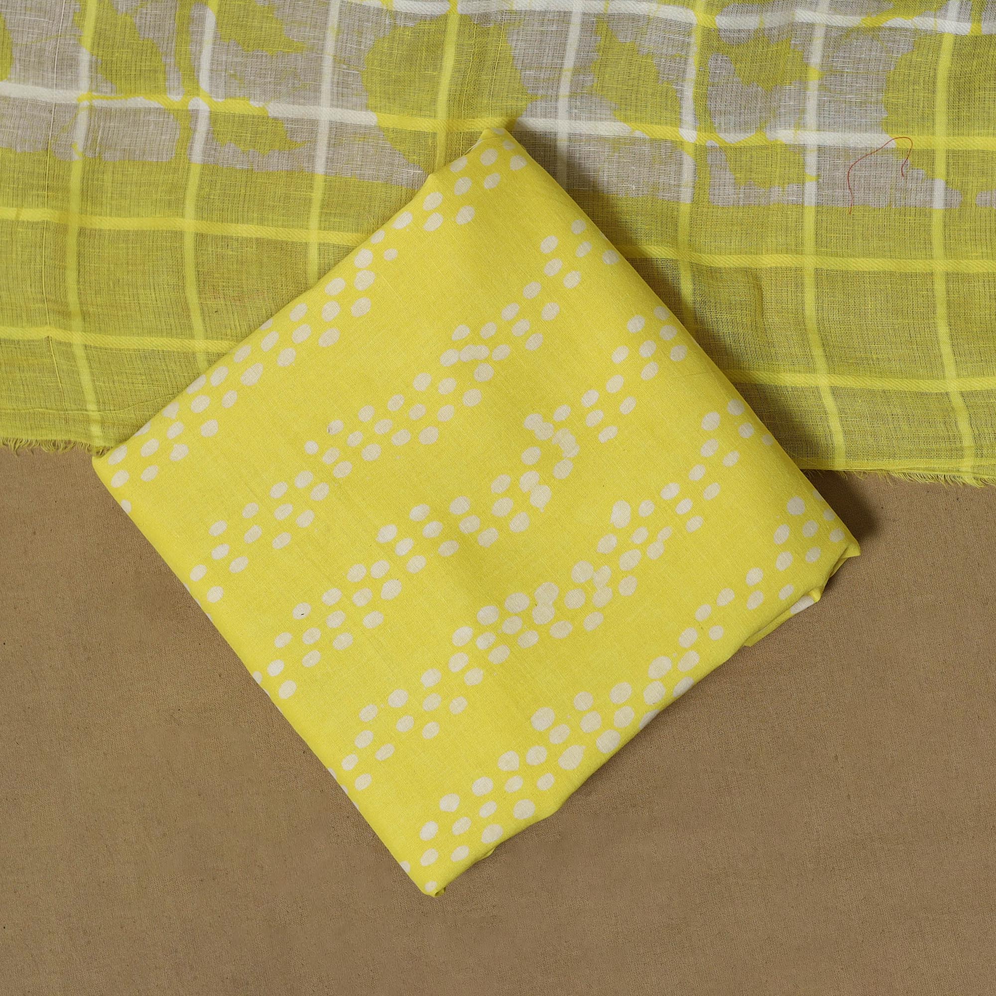 Green - Cotton Hand Block Batik Print 3pc Unstitched Dress Material 02