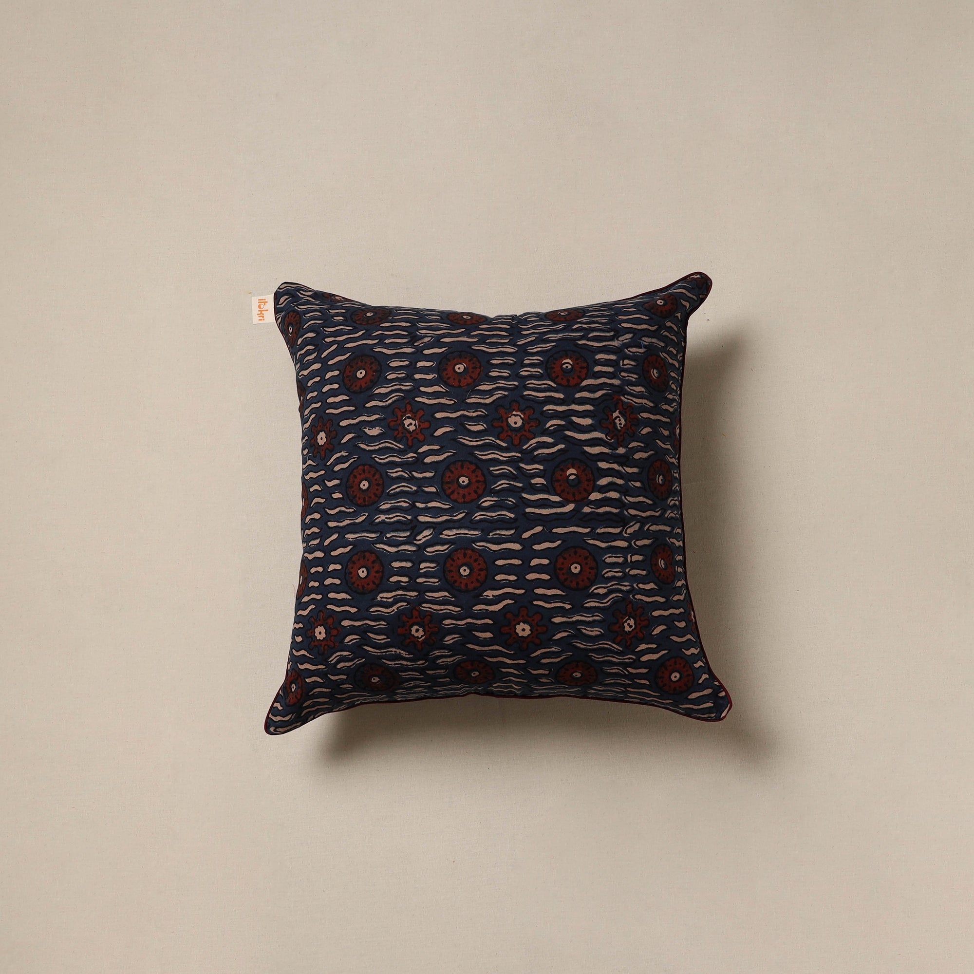 Hand block print ajrakh cushion cover, crafted from cotton and traditional Indian handmade textiles. It blends artistry with comfort, making it perfect for your sofa, bed or lounge area.