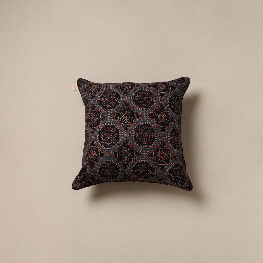 Hand block print ajrakh cushion cover, crafted from cotton and traditional Indian handmade textiles. It blends artistry with comfort, making it perfect for your sofa, bed or lounge area.
