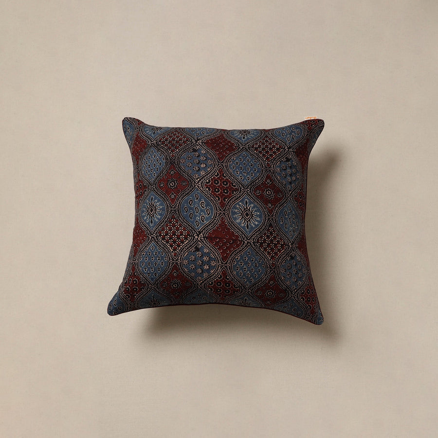 Hand block print ajrakh cushion cover, crafted from cotton and traditional Indian handmade textiles. It blends artistry with comfort, making it perfect for your sofa, bed or lounge area.