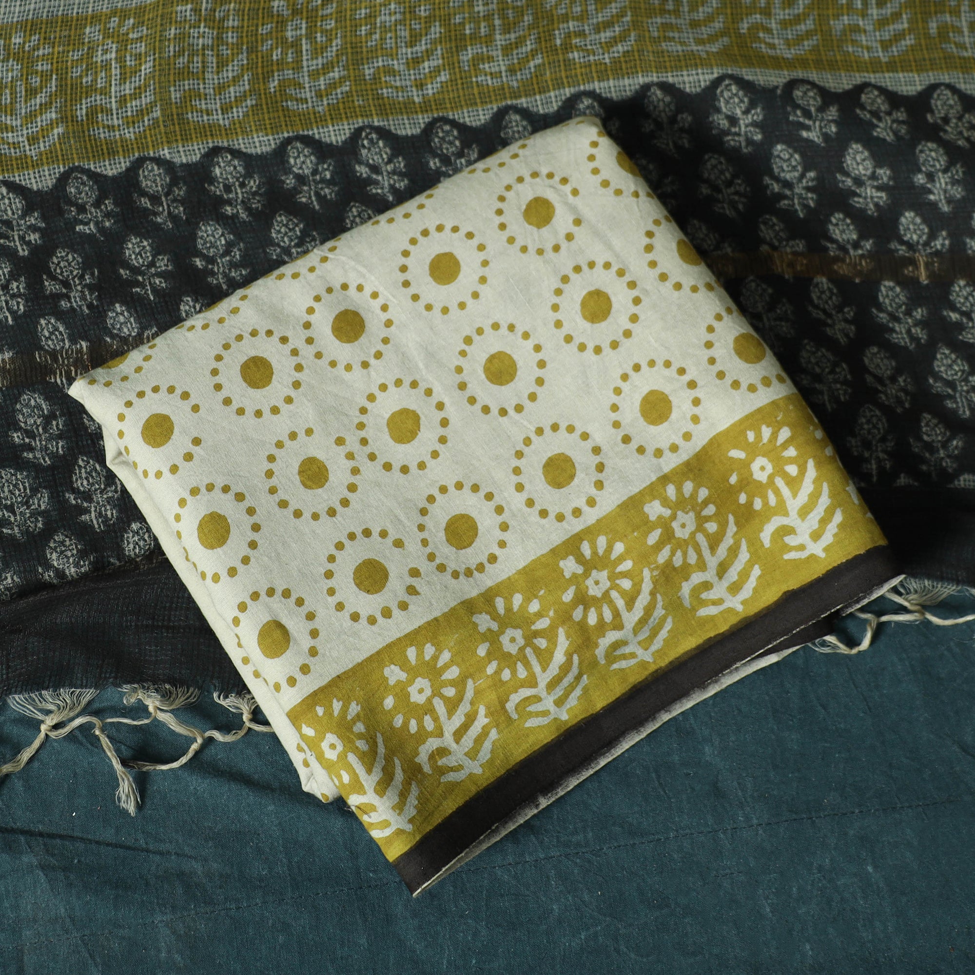 Hand Block Print Bagru Cotton 3pc Unstitched Dress Material 05