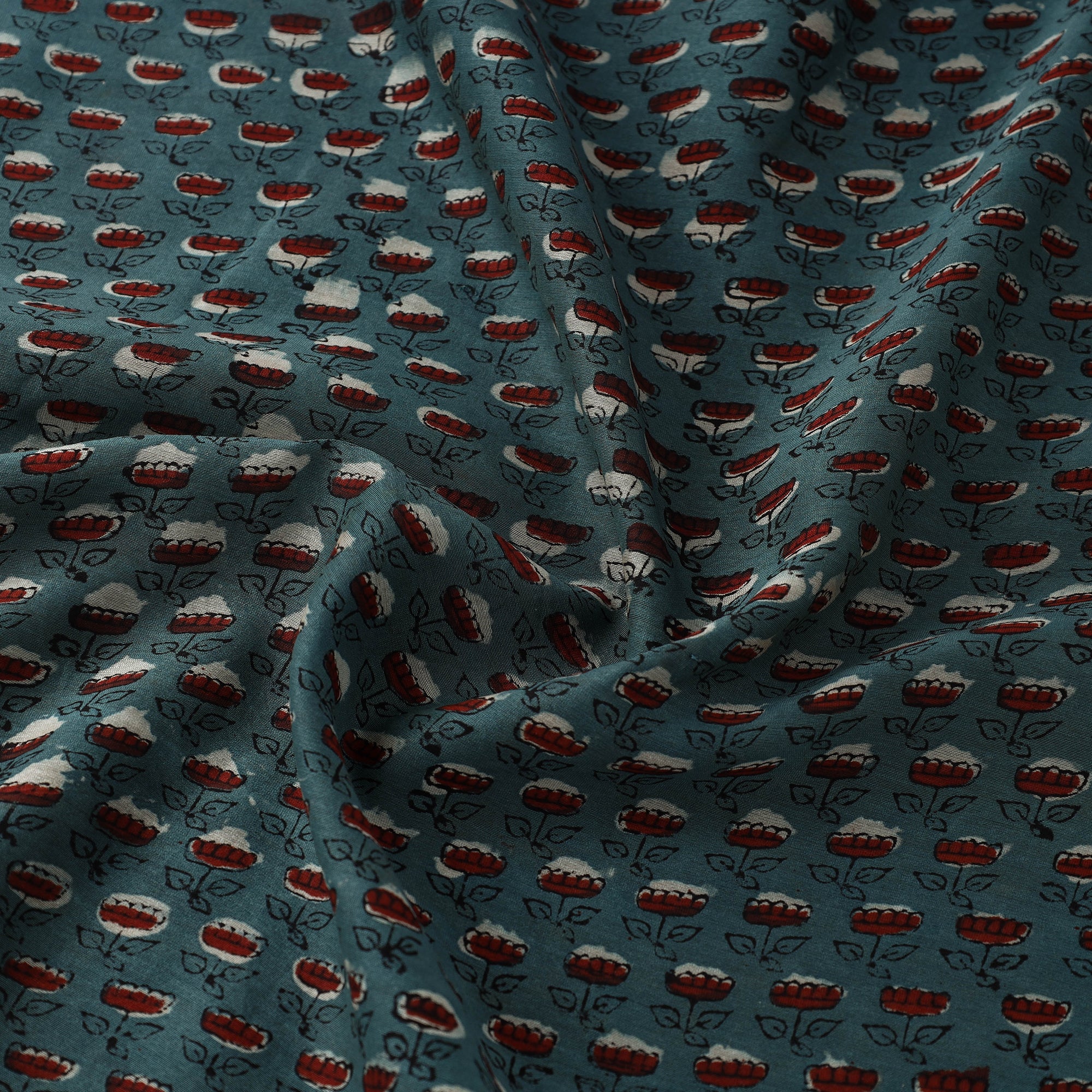 Green - Block Print Cotton Natural Dyed Jahota Fabric 15