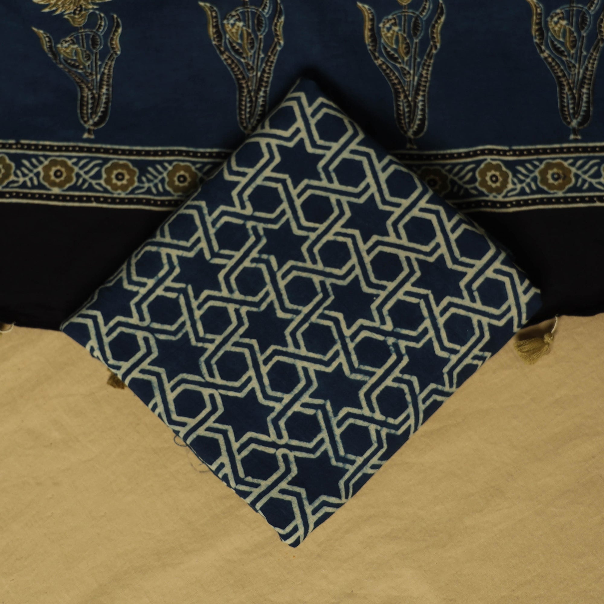 • Blue - Natural Dyed Block Print 3pc Unstitched Ajrakh Dress Material 17