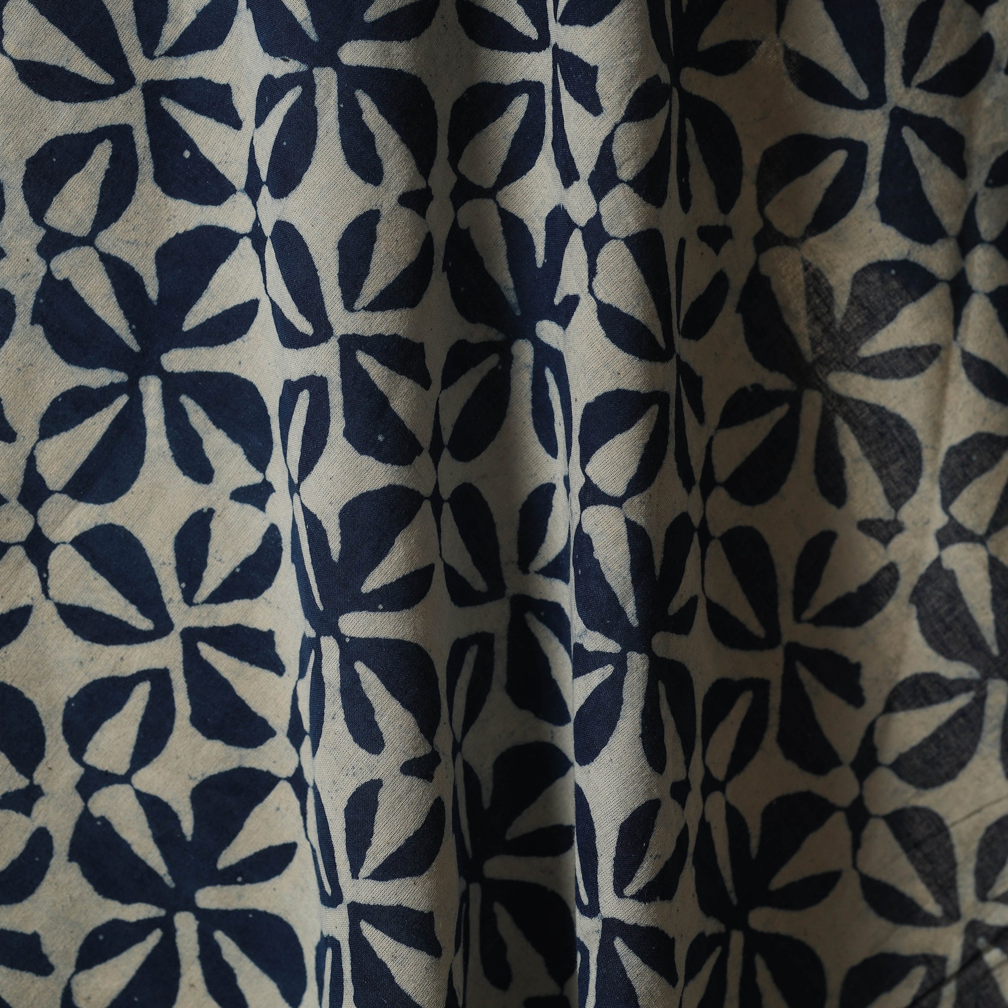Blue indigo bagru hand block print fabric is crafted in Rajasthan using traditional hand block printing techniques with natural dyes. Each piece reflects the rich heritage of Bagru artisans. Made from cotton, it is ideal for creating apparel, home decor and accessories.