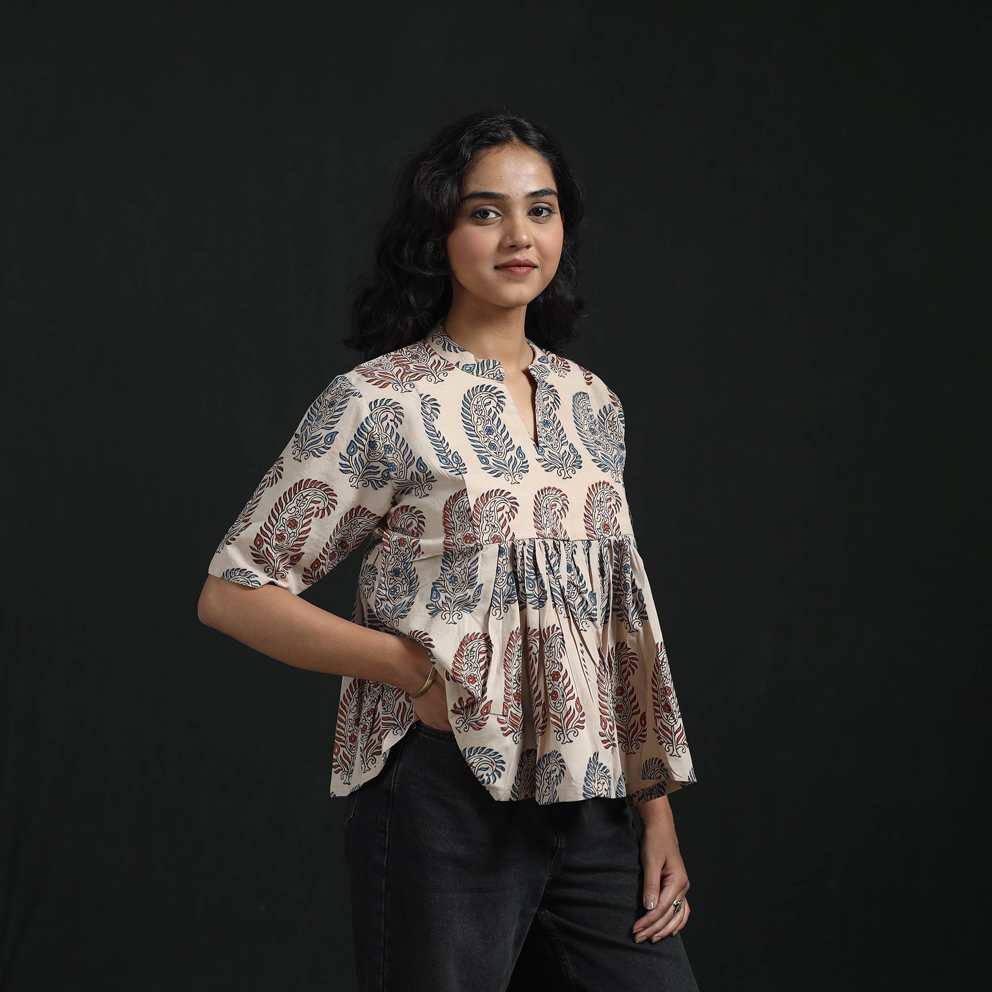 | Material | Ajrakh hand block print natural dyed pure cotton women’s crop top featuring half sleeves. It is created using the traditional resist block printing technique. This ancient craft is estimated to be over 4,500 years old and is known for its intricate patterns and deep natural colours. The breathable fabric ensures all-day comfort and pairs beautifully with skirts or pants. |