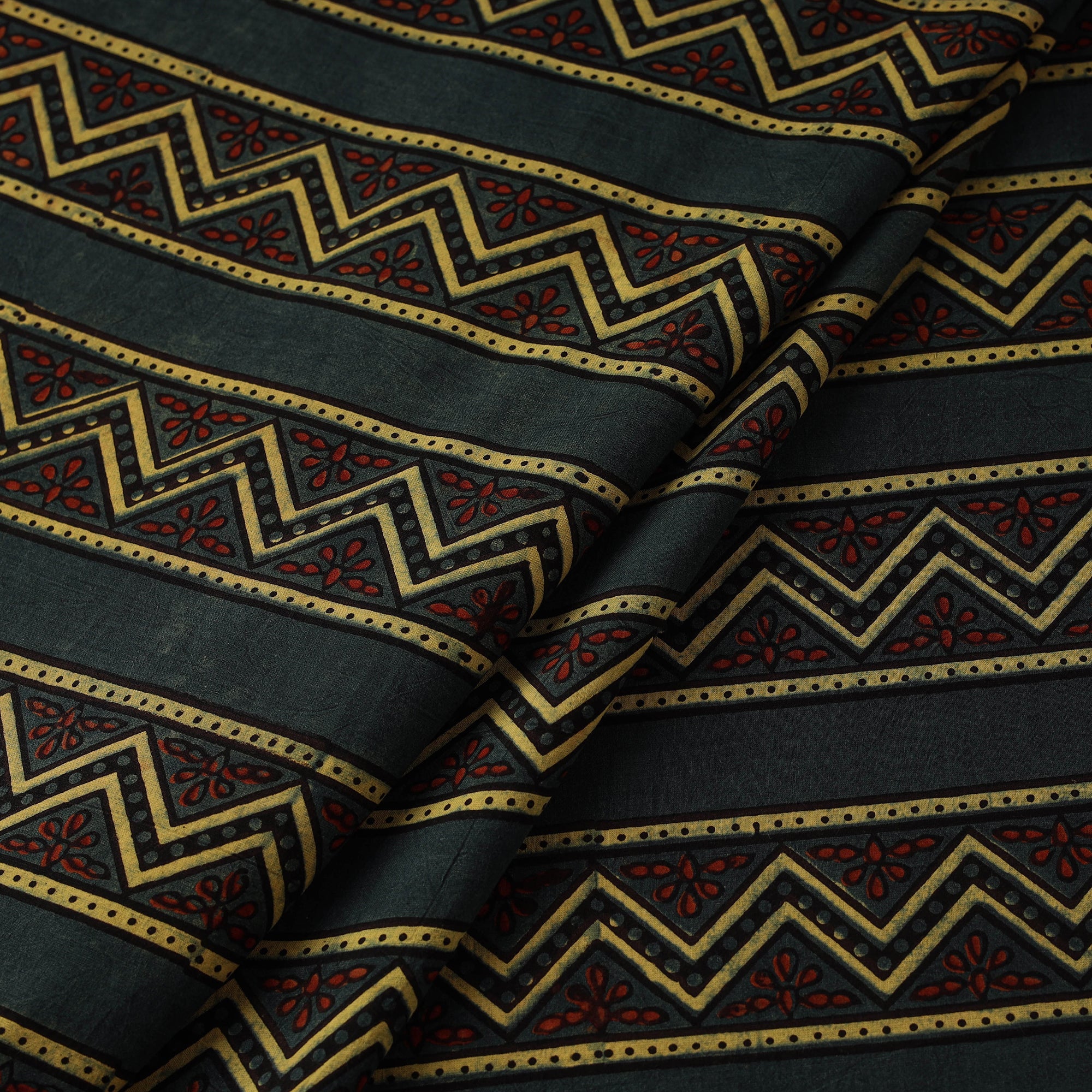 • Hand Block Print Cotton Natural Dyed Ajrakh Fabric 08