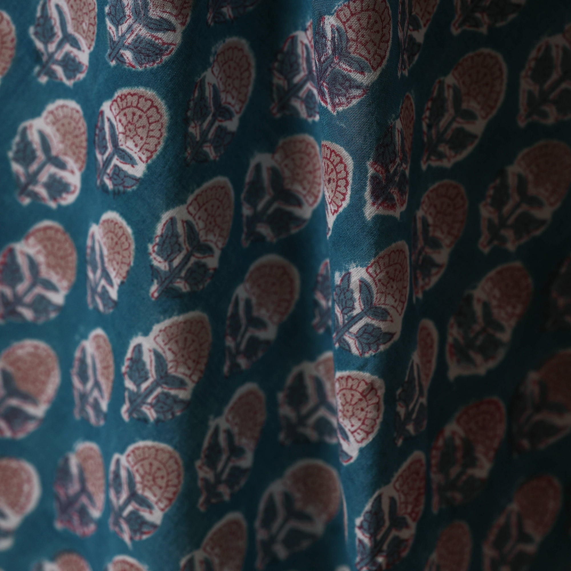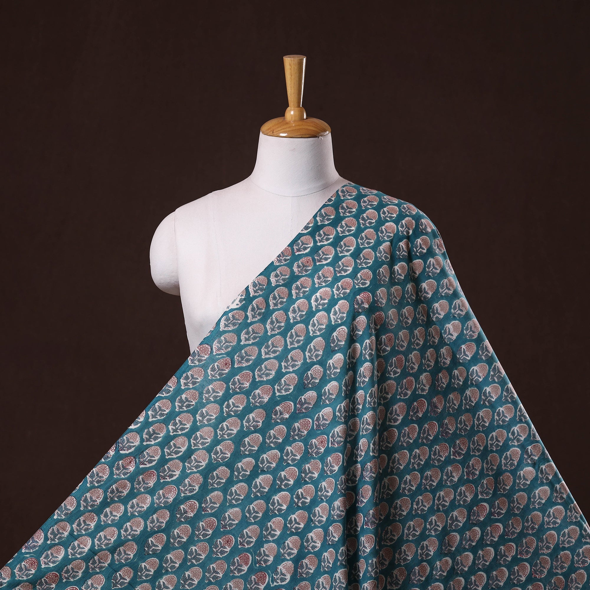 Blue sanganeri hand block printed cotton fabric by artisans in Sanganer, Jaipur, it showcases delicate floral patterns created with traditional wooden blocks. The breathable lightweight pure cotton is ideal for making kurtas, dresses, tunics or even home decor items like cushions and curtains.