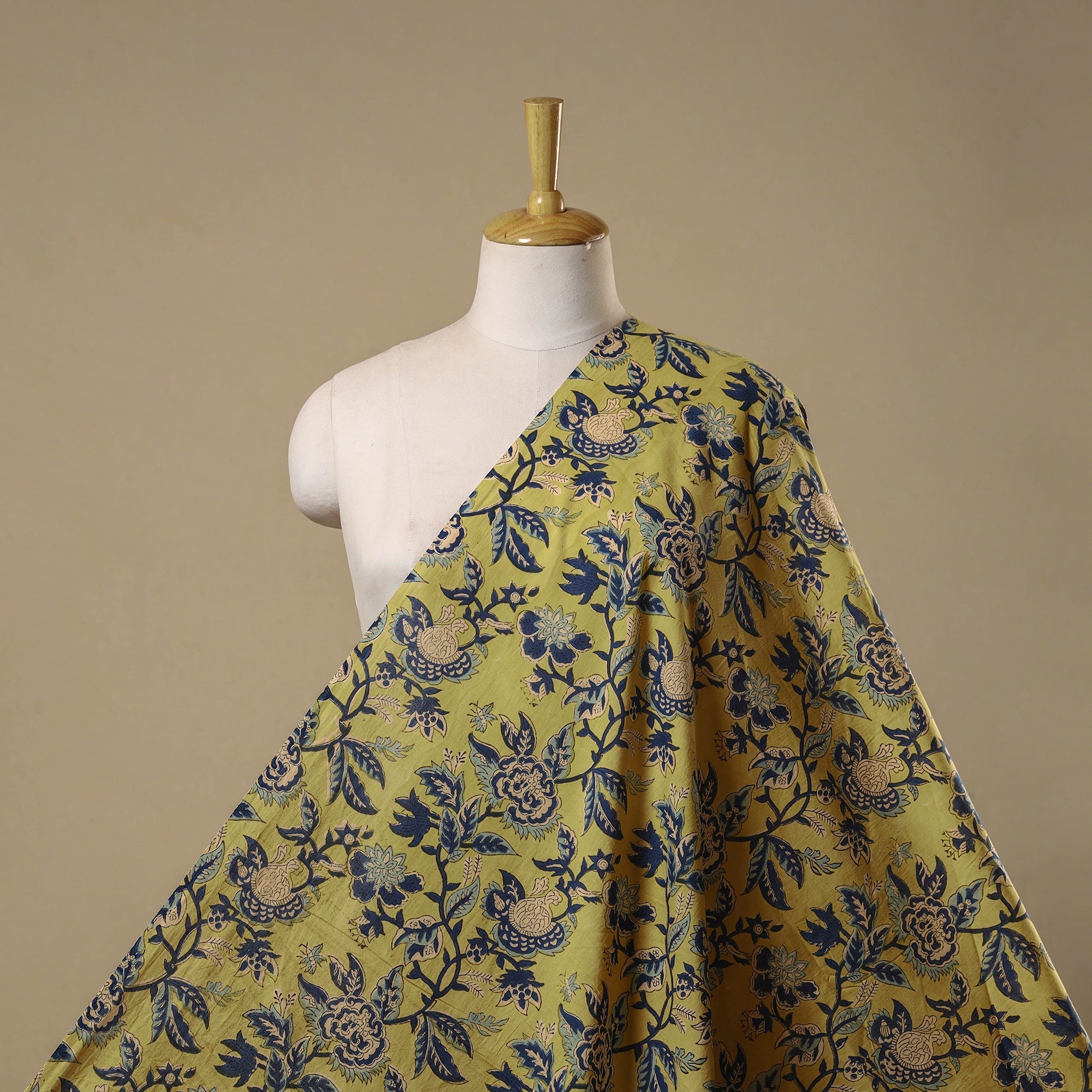 Yellow - Hand Block Print Cotton Sanganeri Fabric 08