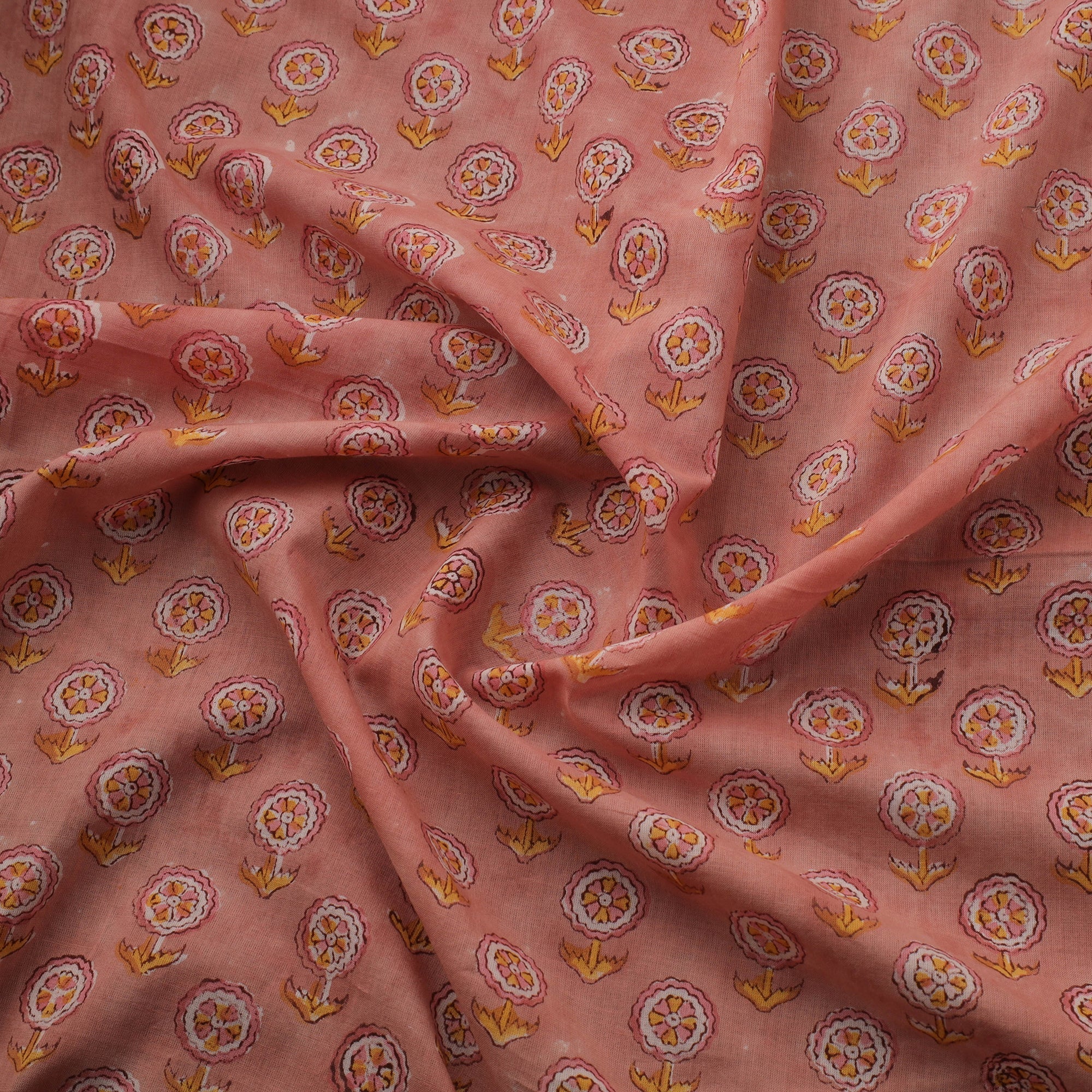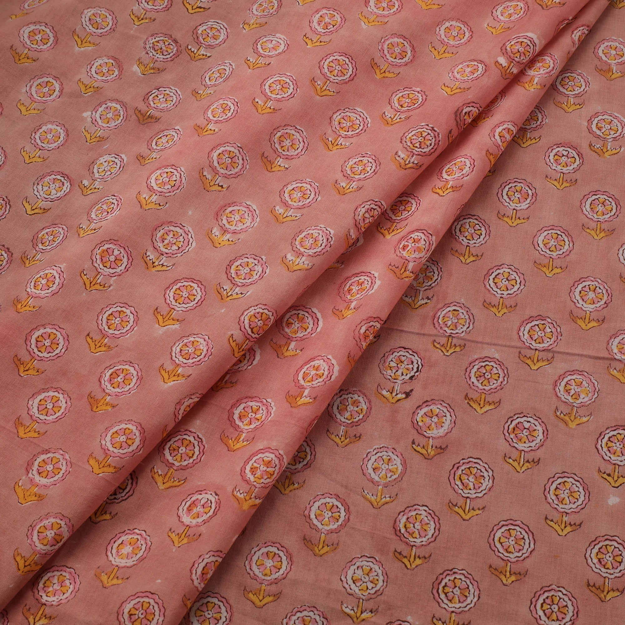 Pink - Hand Block Print Cotton Sanganeri Fabric 11