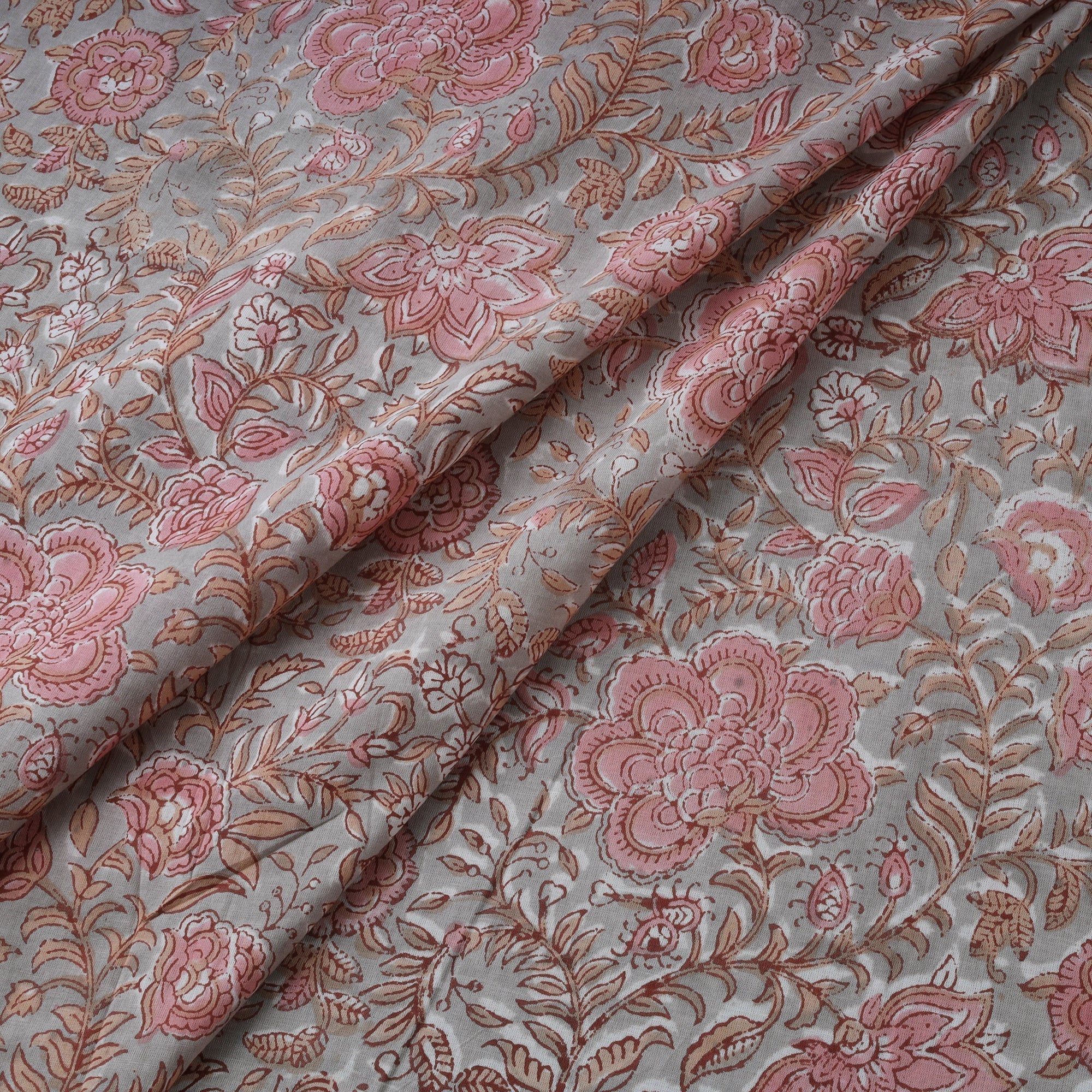 • Brown - hand block print cotton sanganeri fabric 12