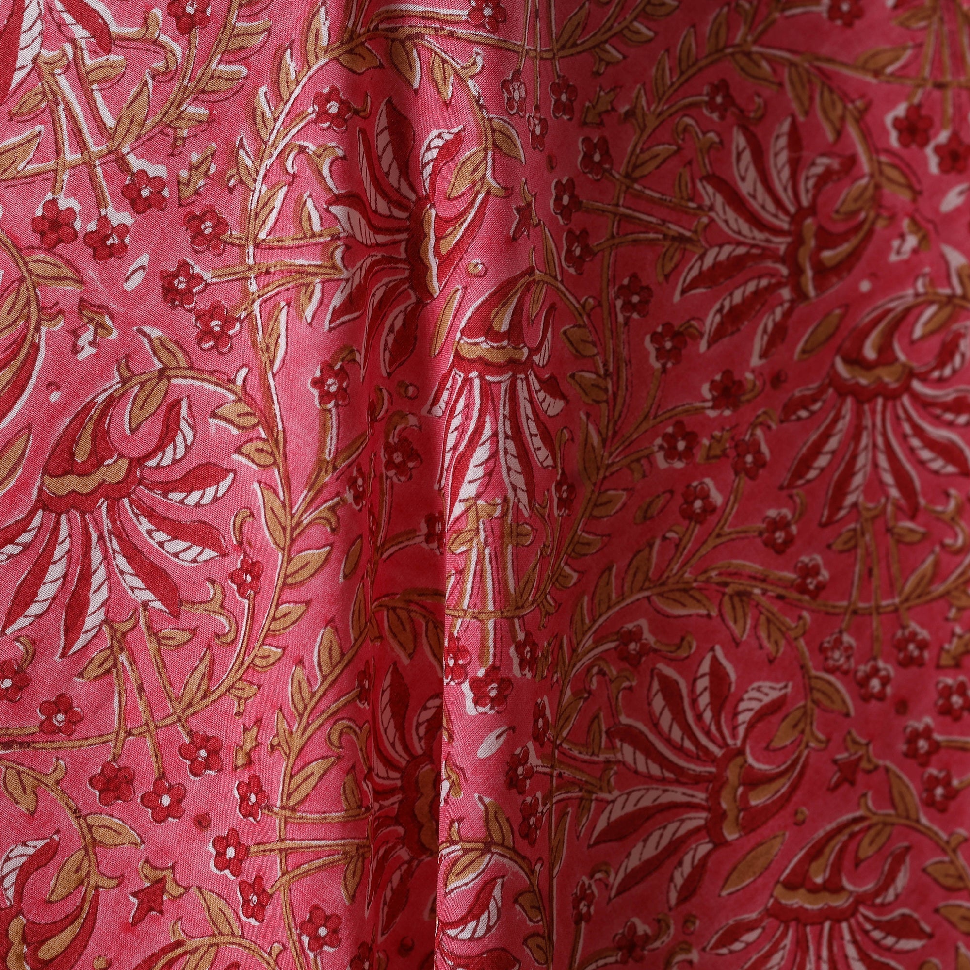 Sanganeri hand block printed cotton fabric by artisans in Sanganer, Jaipur, it showcases delicate floral patterns created with traditional wooden blocks. The breathable lightweight pure cotton is ideal for making kurtas, dresses, tunics or even home decor items like cushions and curtains.