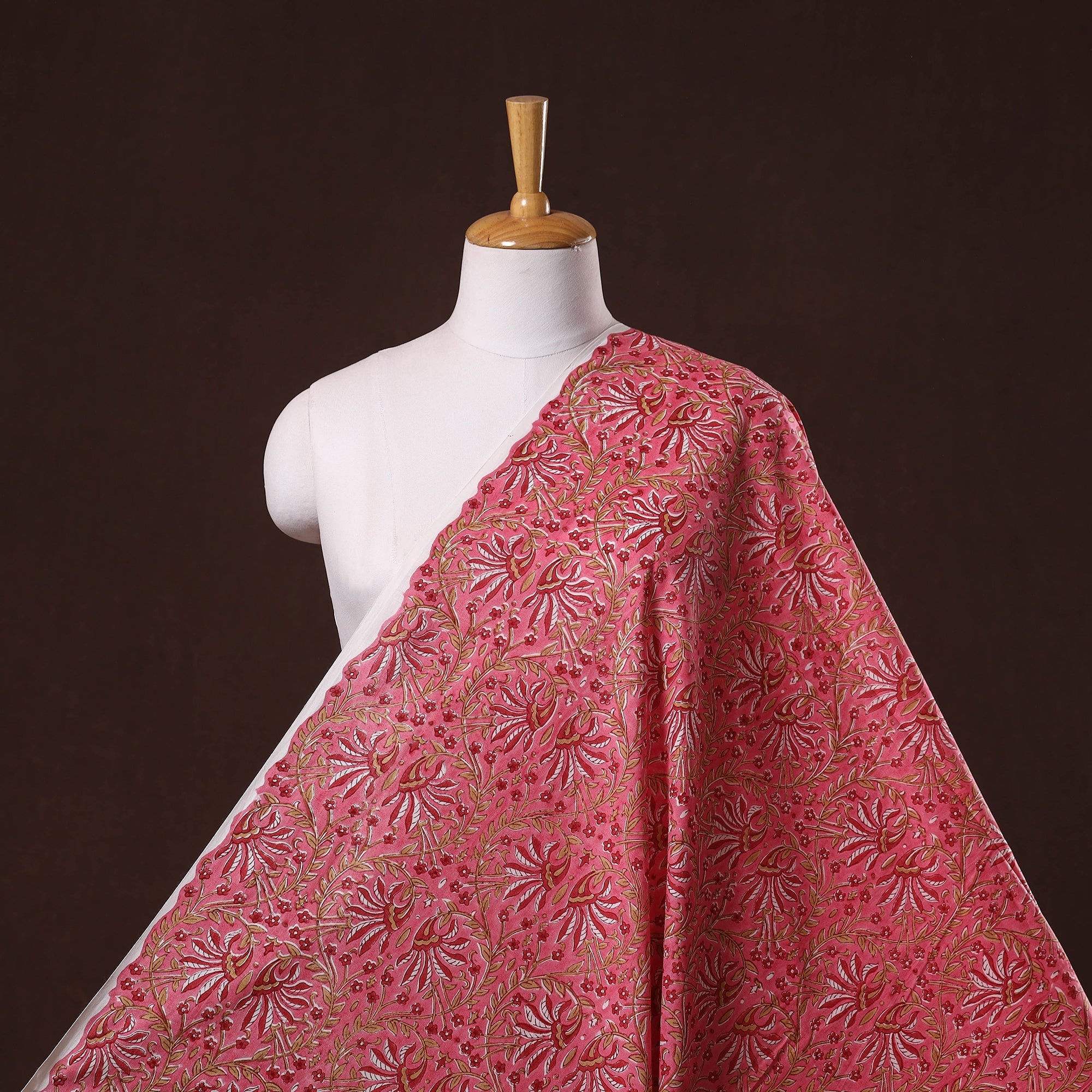 Pink sanganeri hand block printed cotton fabric by artisans in Sanganer, Jaipur, it showcases delicate floral patterns created with traditional wooden blocks. The breathable lightweight pure cotton is ideal for making kurtas, dresses, tunics or even home decor items like cushions and curtains.
