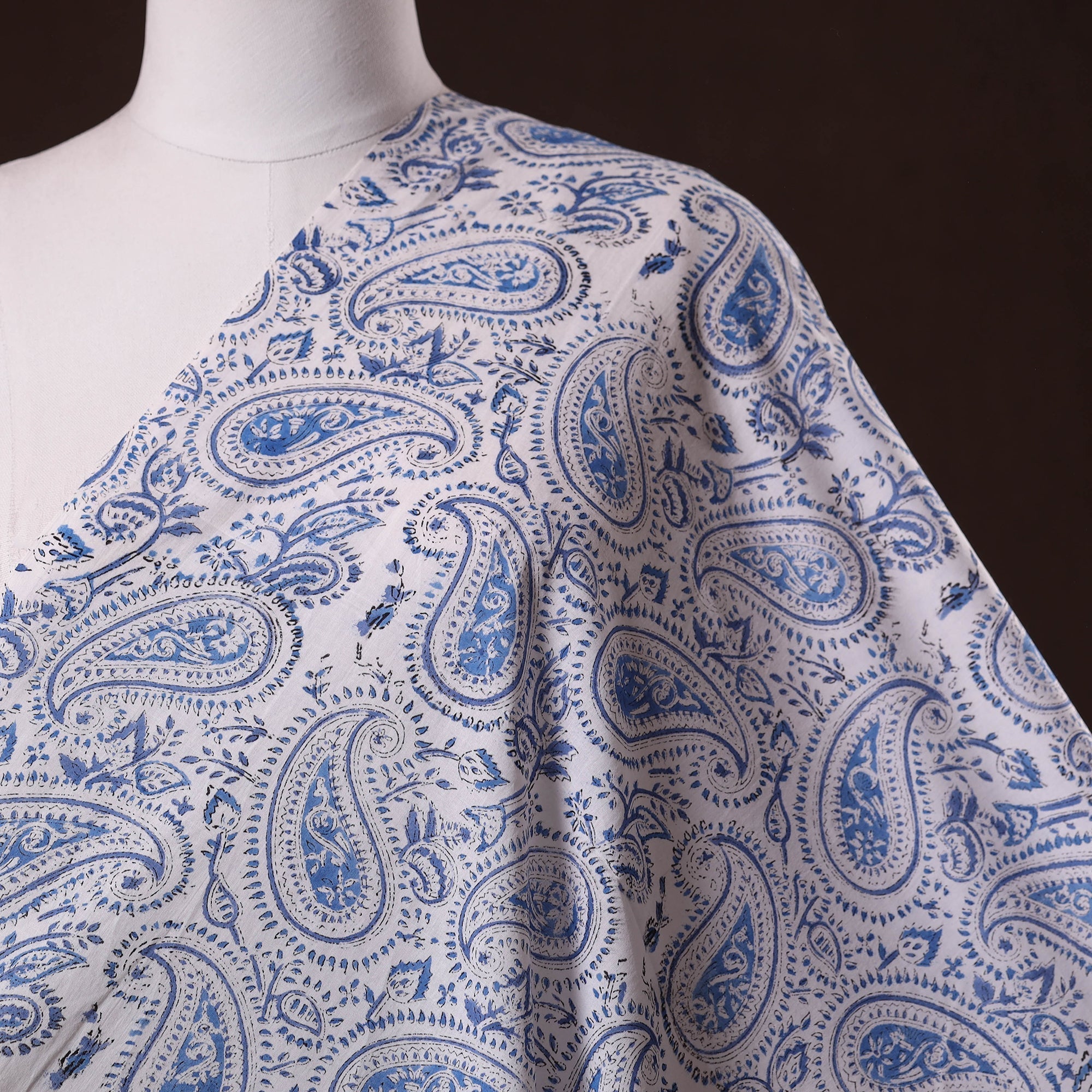 Blue sanganeri hand block printed cotton fabric by artisans in Sanganer, Jaipur, it showcases delicate floral patterns created with traditional wooden blocks. The breathable lightweight pure cotton is ideal for making kurtas, dresses, tunics or even home decor items like cushions and curtains.