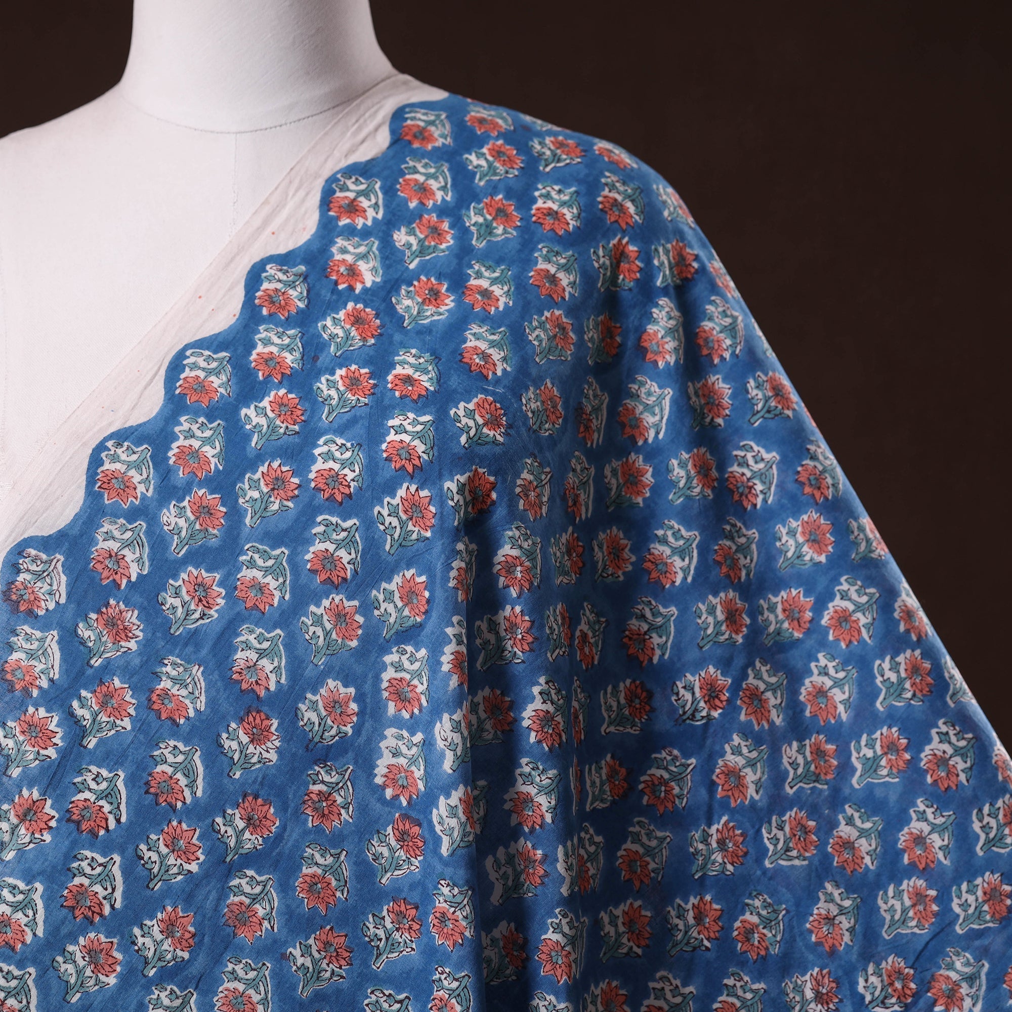 Blue sanganeri hand block printed cotton fabric by artisans in Sanganer, Jaipur, it showcases delicate floral patterns created with traditional wooden blocks. The breathable lightweight pure cotton is ideal for making kurtas, dresses, tunics or even home decor items like cushions and curtains.