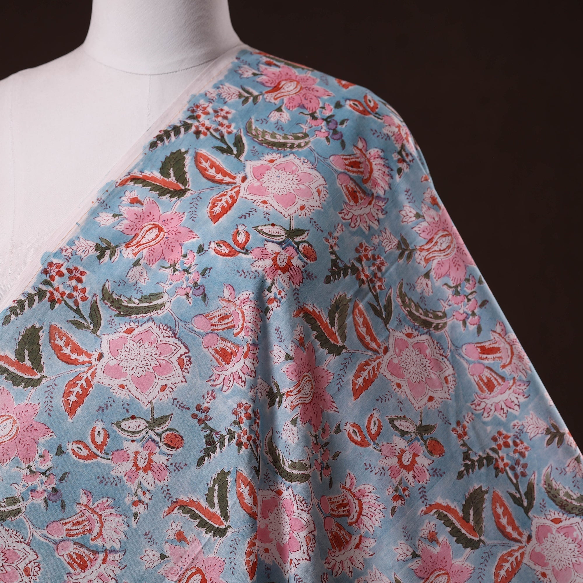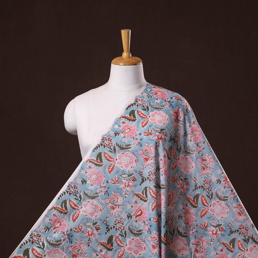 Blue sanganeri hand block printed cotton fabric by artisans in Sanganer, Jaipur, it showcases delicate floral patterns created with traditional wooden blocks. The breathable lightweight pure cotton is ideal for making kurtas, dresses, tunics or even home decor items like cushions and curtains.