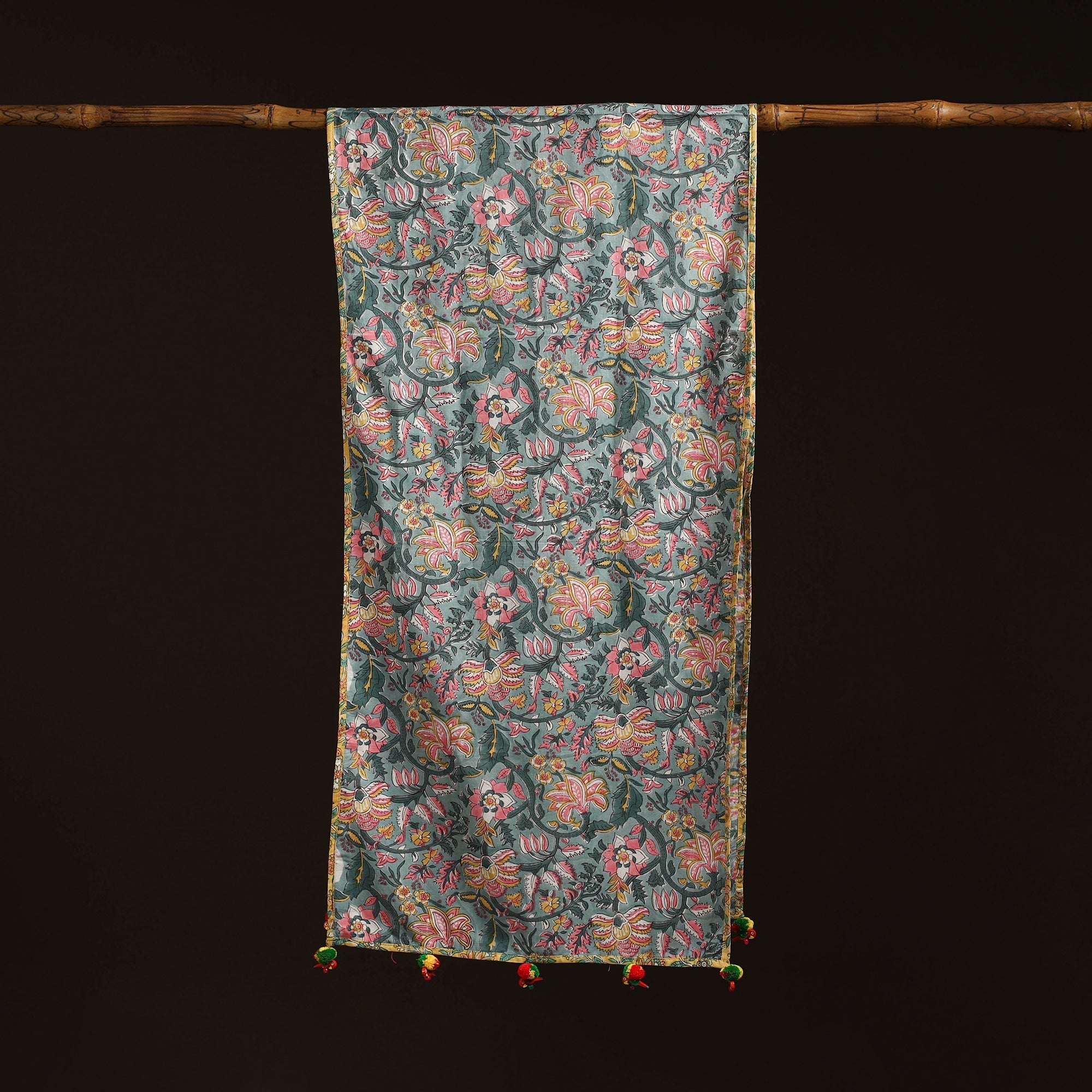 | Material | Blue sanganeri stole from Rajasthan features intricate floral motifs created using traditional hand block printing techniques. Crafted with VAT dyes to ensure vibrant, long-lasting colors. Made from breathable pure soft cotton and finished with delicate tassels, the stole is comfortable to wear and easy to style. |