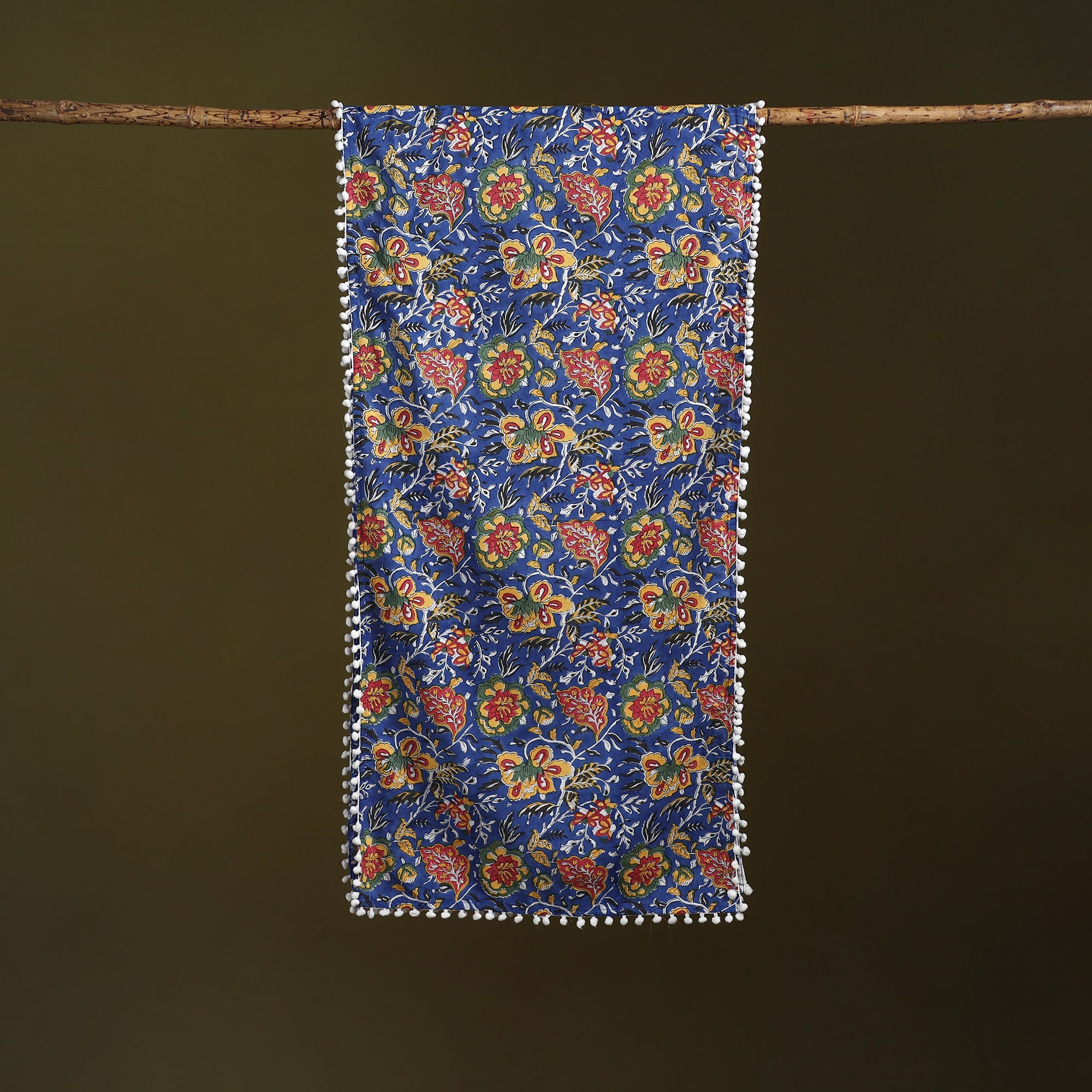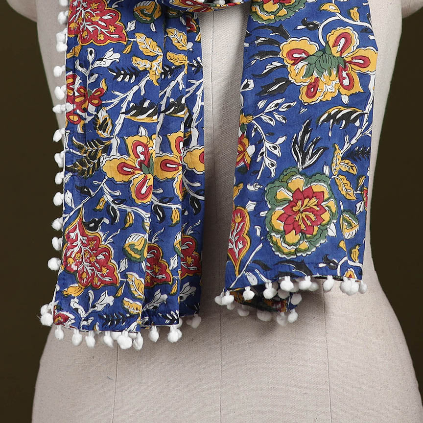 Sanganeri stole is beautifully hand block printed using traditional techniques by skilled artisans from Sanganer, Rajasthan. Made from breathable cotton, it features floral motifs and pom-poms, adding grace to both everyday and festive wear.