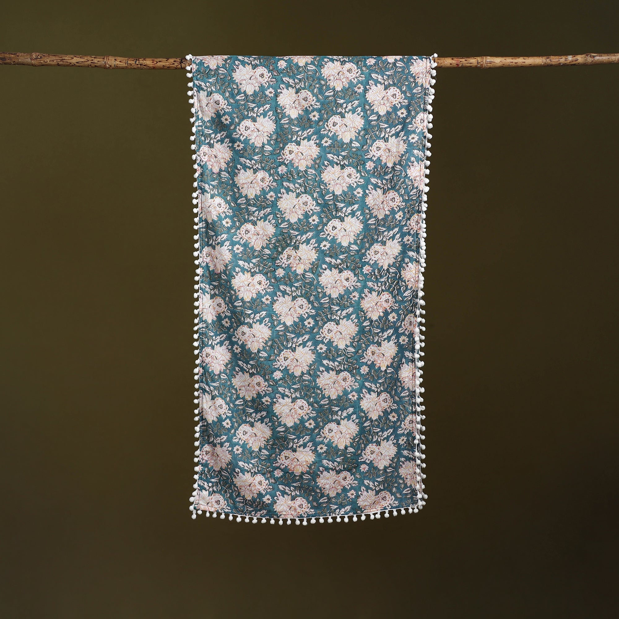 Sanganeri stole is beautifully hand block printed using traditional techniques by skilled artisans from Sanganer, Rajasthan. Made from breathable cotton, it features floral motifs and pom-poms, adding grace to both everyday and festive wear.