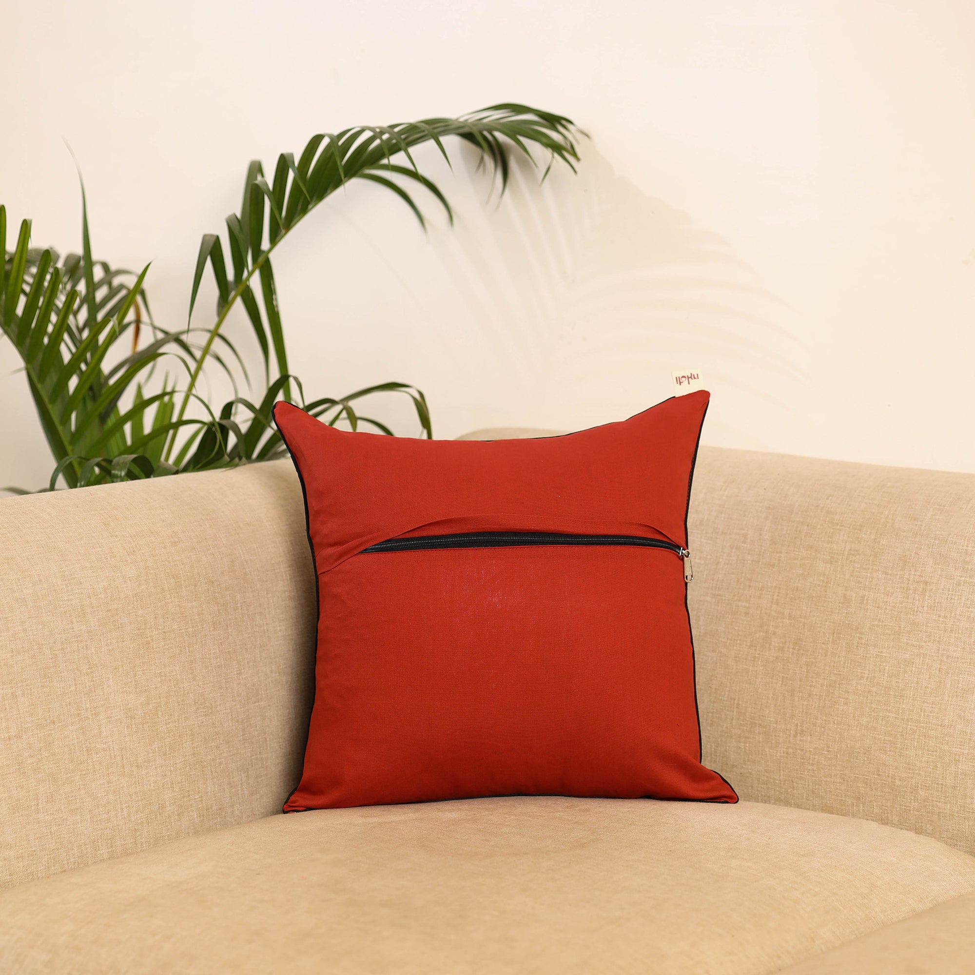 Orange hand block print kalamkari cushion cover, crafted from cotton and traditional Indian handmade textiles. It blends artistry with comfort, making it perfect for your sofa, bed or lounge area.