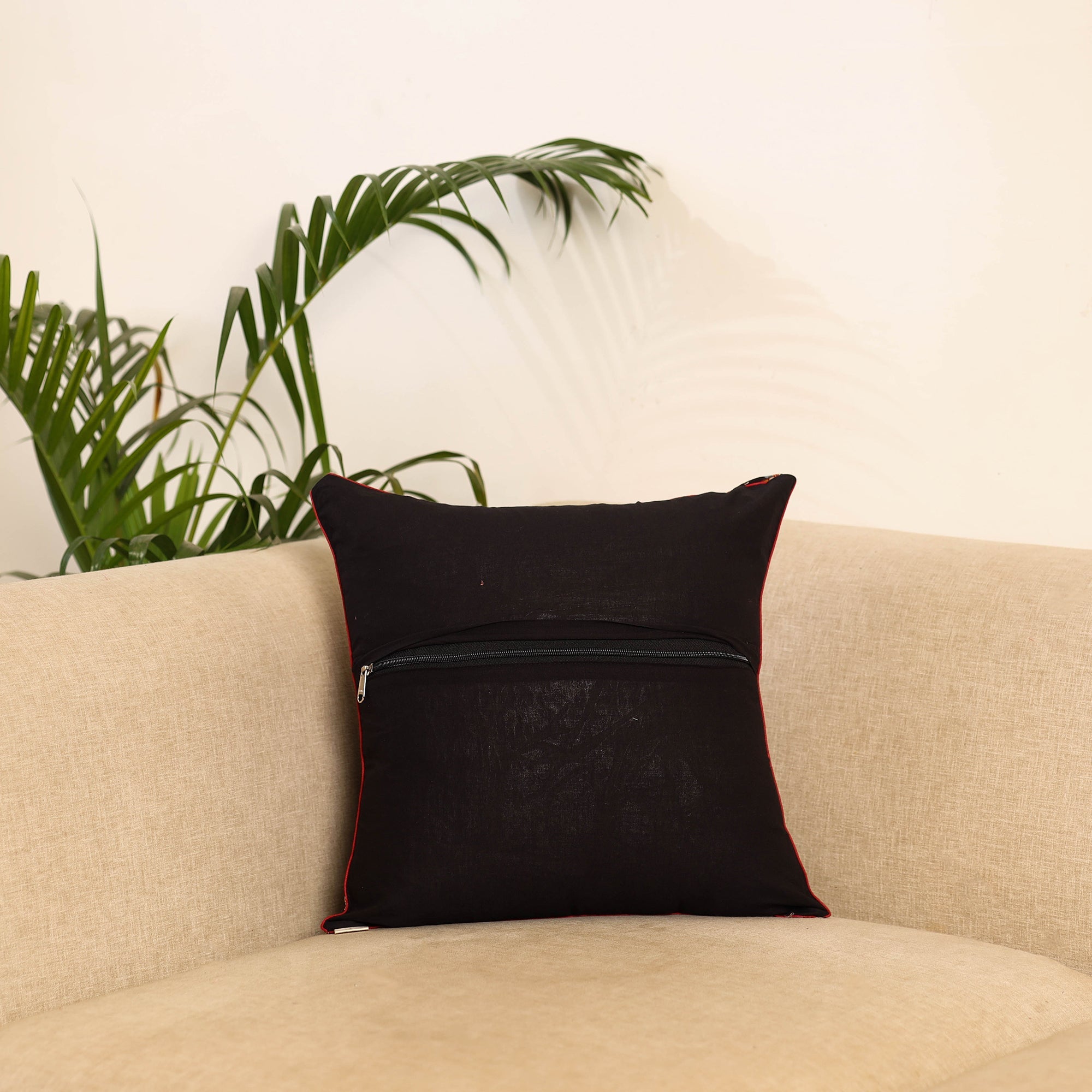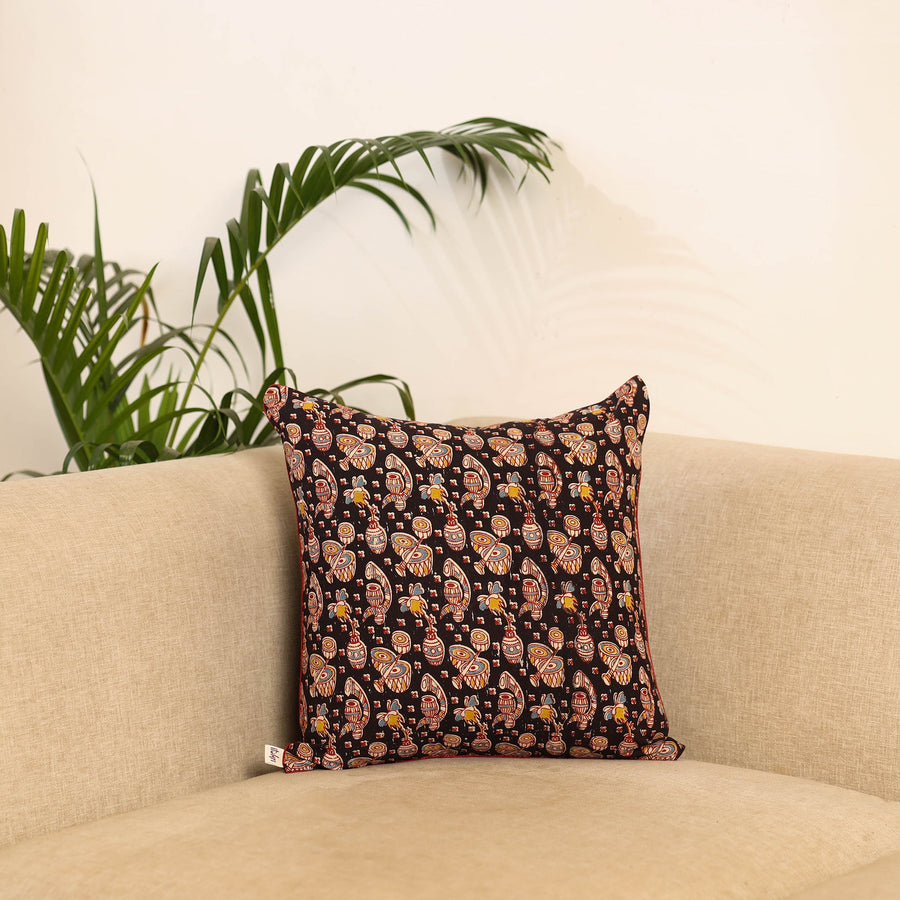 Black - Hand Block Print Kalamkari Cushion Cover 35
