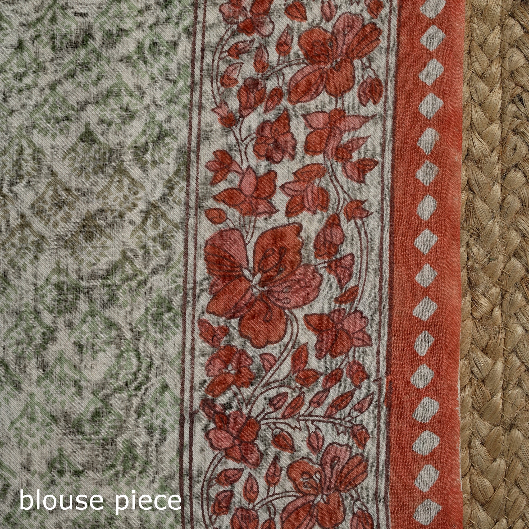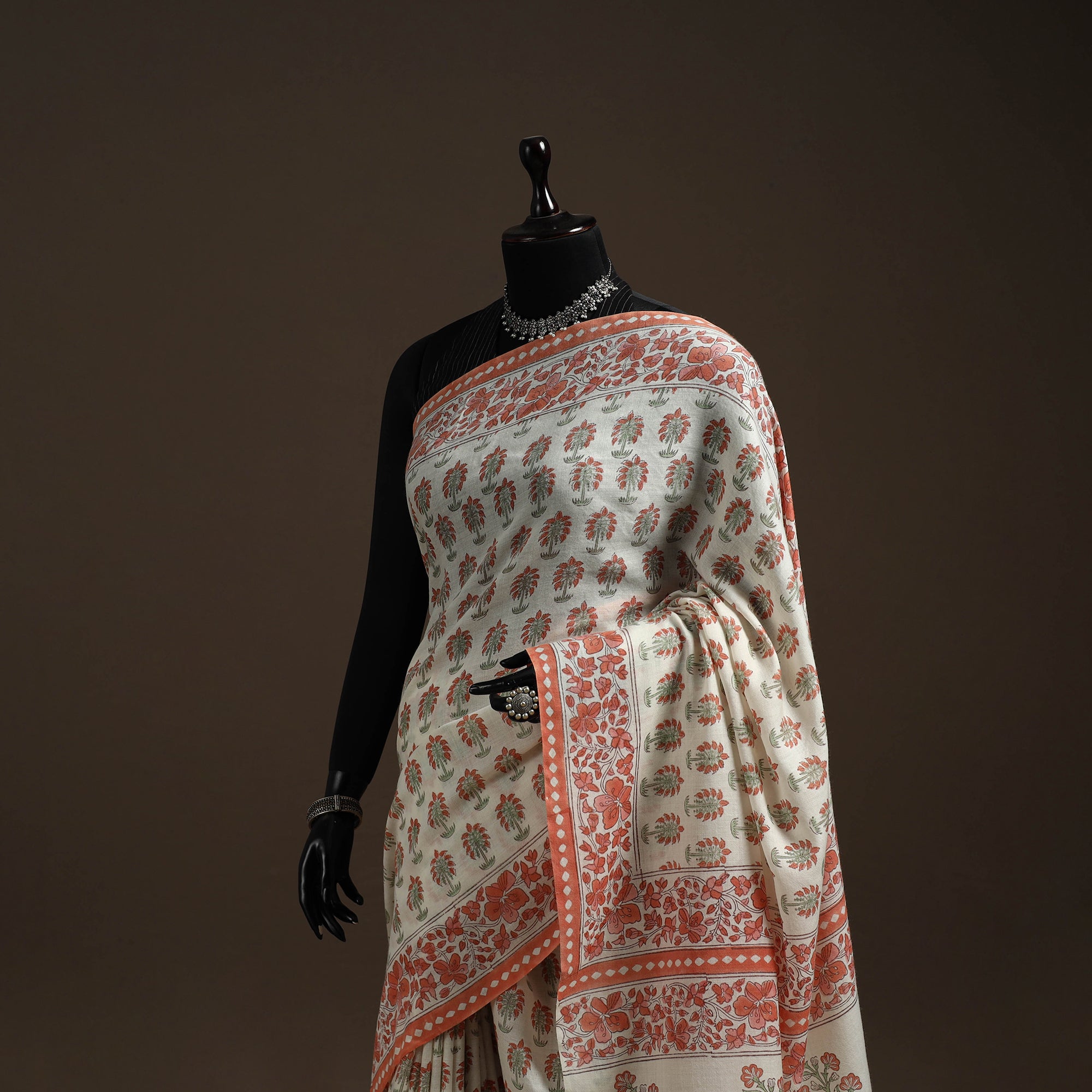 Hand Block Print Merino Wool Sanganeri Saree 05