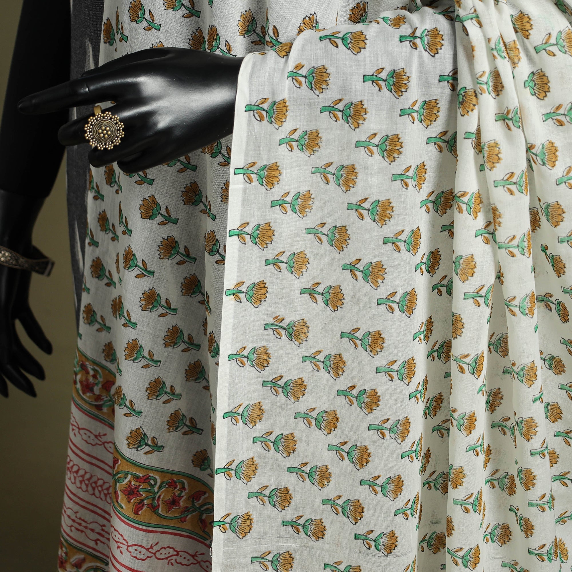 Green - Hand Block Print Slub Cotton Sanganeri Fabric 12