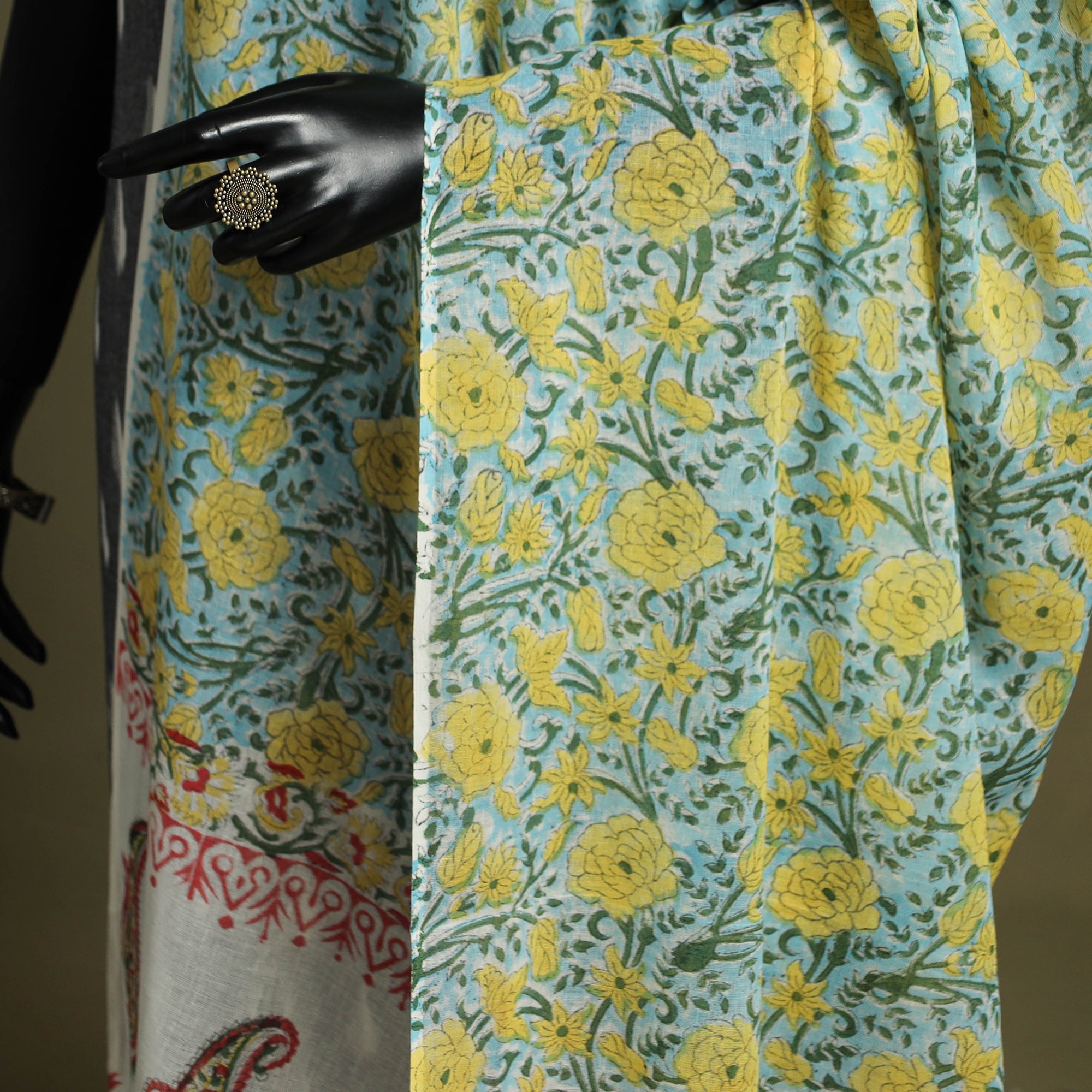 Yellow - Hand Block Print Chanderi Silk Sanganeri Fabric 02