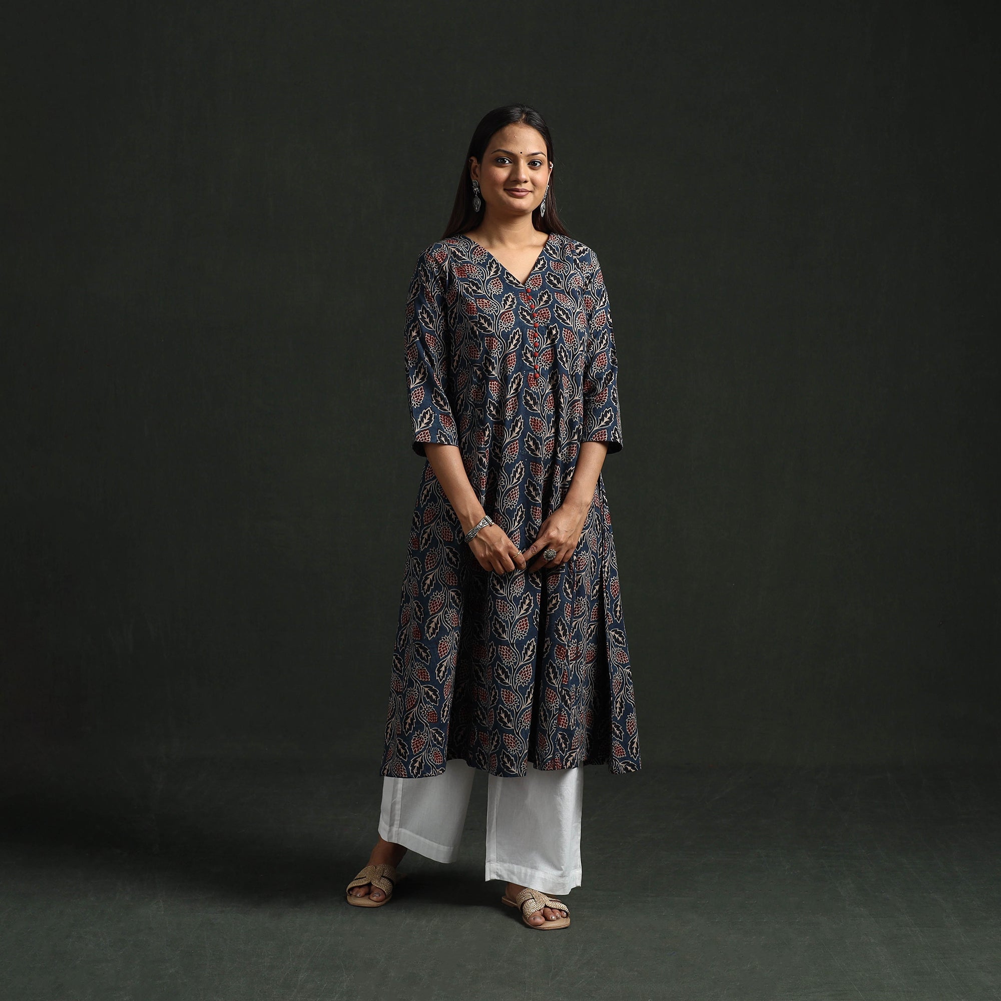 Hand Block Print Natural Dyed Cotton A-Line Ajrakh Kurta for women 21