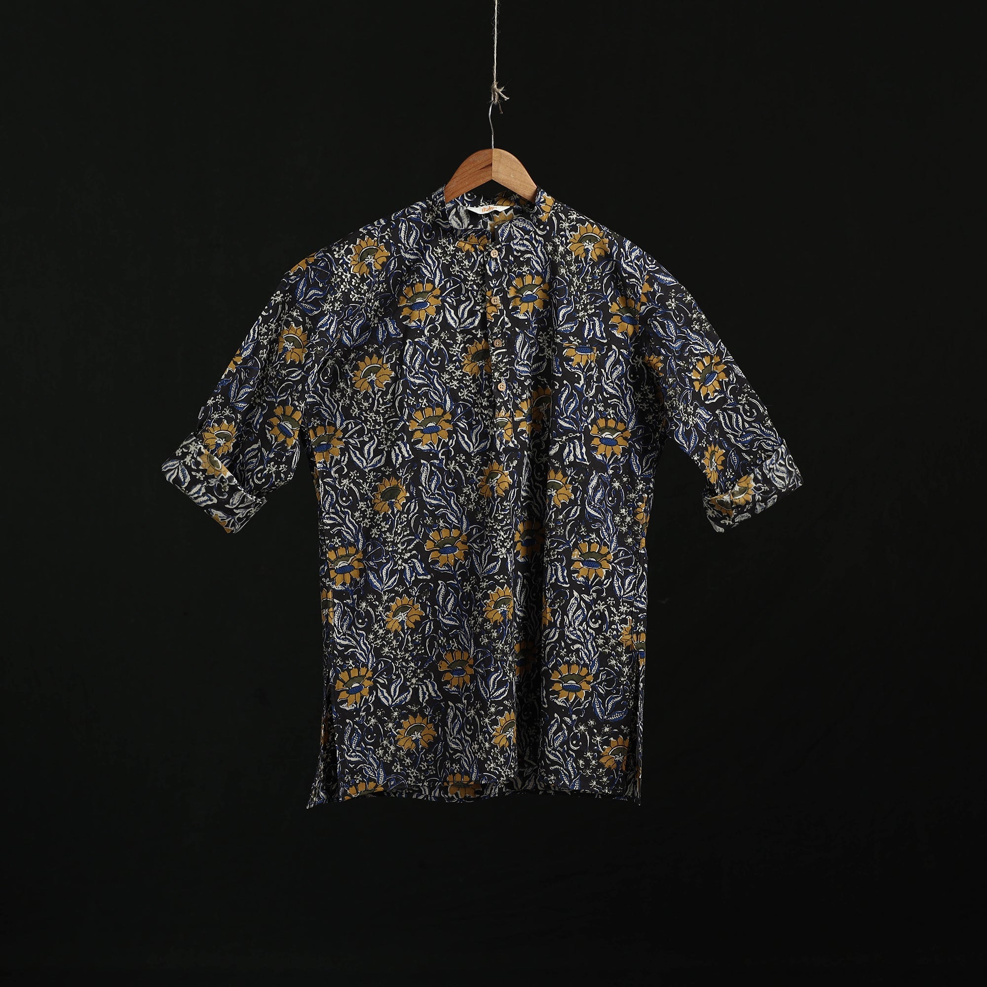 | Material | Bagru hand block print natural dyed short kurta for men. Bagru printing is a traditional craft from Rajasthan, practiced for over 400–450 years using the mud-resist technique. Made from breathable cotton, the kurta features full sleeves, a front button placket with a chinese collar, and a practical front pocket, making it suitable for daily wear and relaxed casual outings. A Note on Handmade Beauty: |