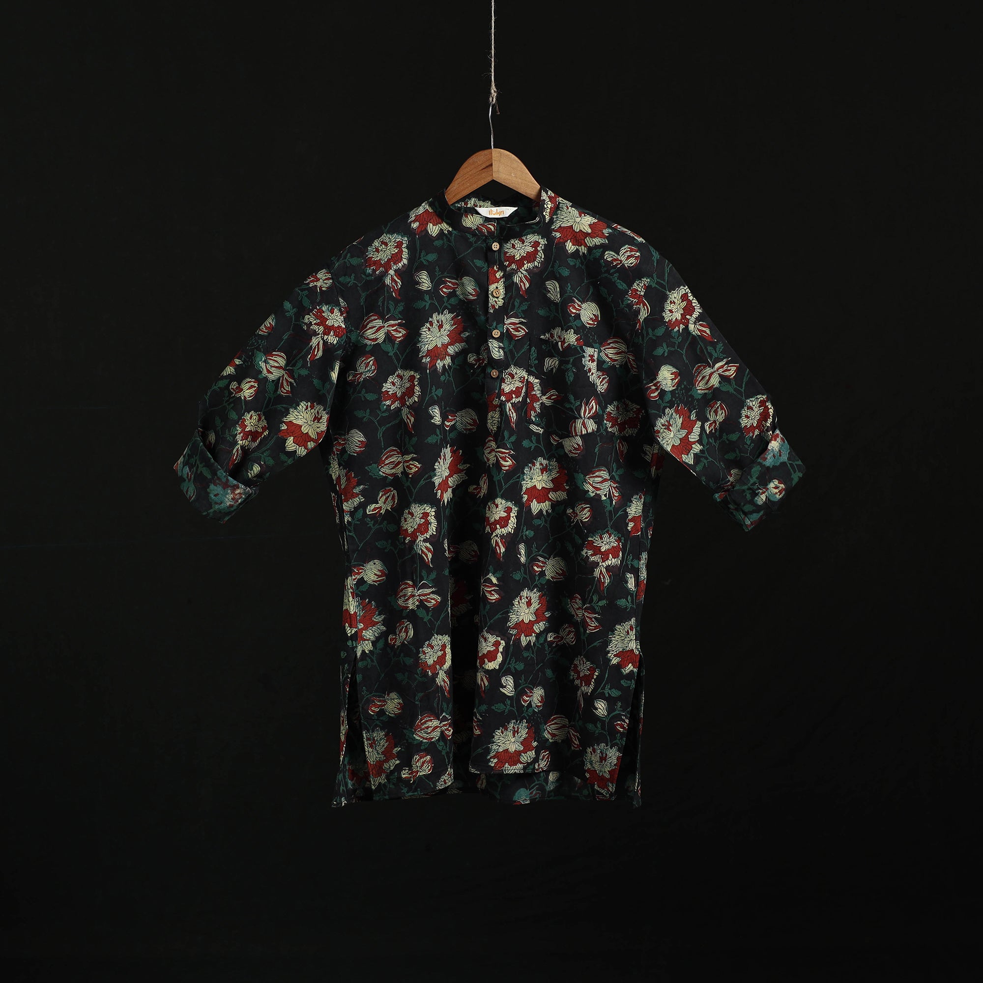 | Material | Bagru hand block print natural dyed short kurta for men. Bagru printing is a traditional craft from Rajasthan, practiced for over 400–450 years using the mud-resist technique. Made from breathable cotton, the kurta features full sleeves, a front button placket with a chinese collar, and a practical front pocket, making it suitable for daily wear and relaxed casual outings. A Note on Handmade Beauty: |