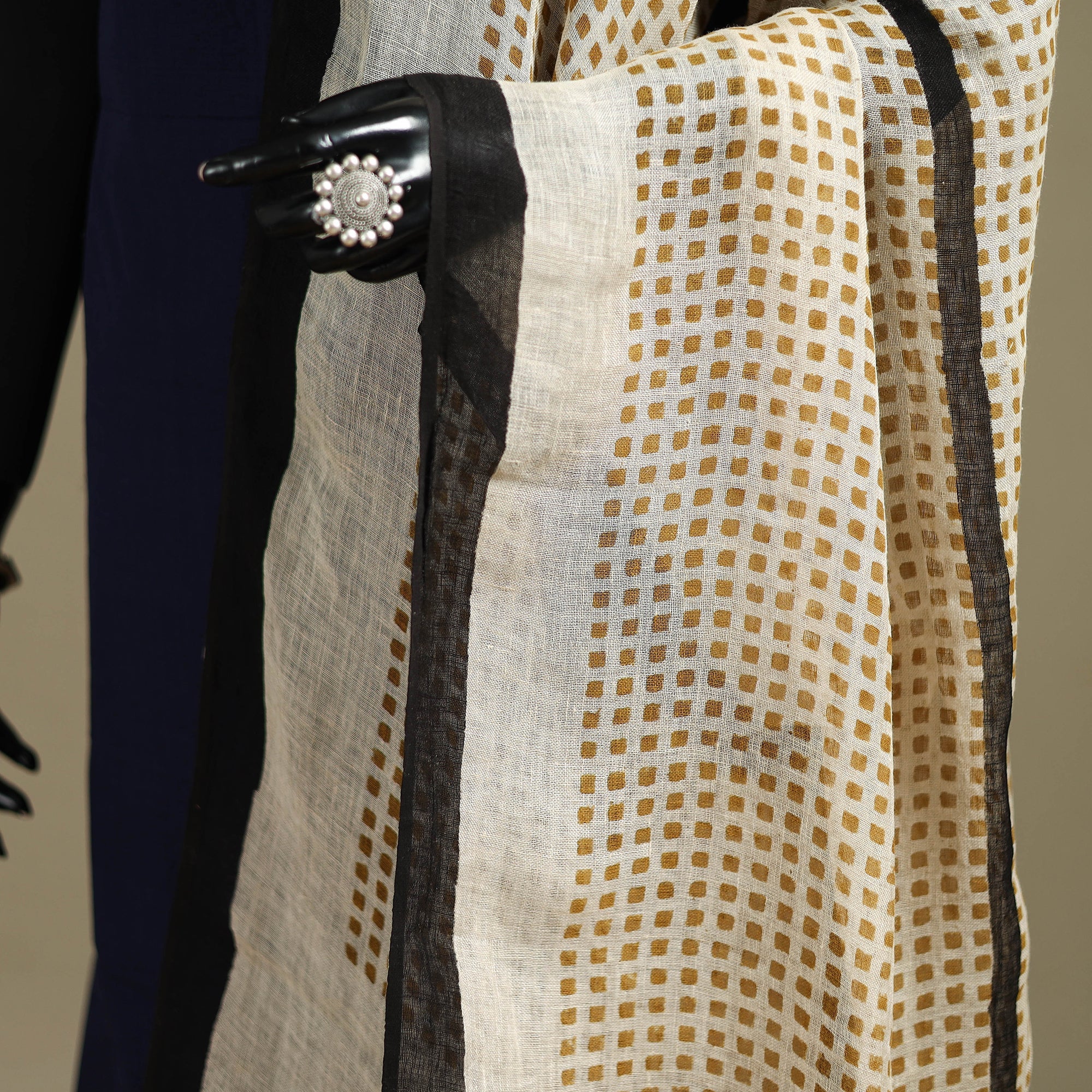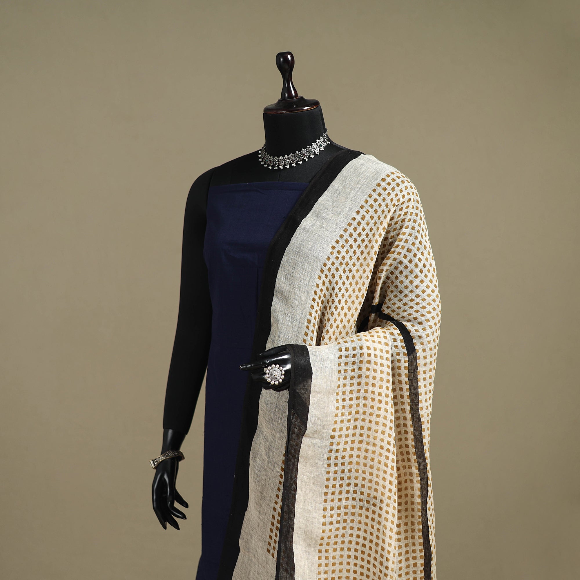 Ajrakh dupatta is hand-block printed in Kutch using natural dyes. Each motif is carefully placed with traditional Ajrakh wooden blocks, creating a detailed and balanced pattern. Made from a linen–cotton blend, it has a smooth feel and a structured drape. The dupatta features tassels that add a refined finish. Easy to drape and style, it pairs well with everyday outfits as well as festive wear, bringing subtle elegance to any look.