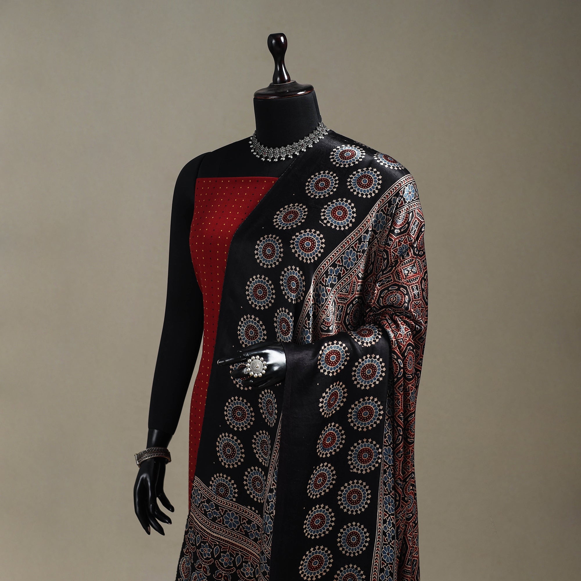 Ajrakh is a well-known traditional vegetable dyeing that resists block-printing techniques on cloth. Originated in Kutch, It is nearly around 4,500 years old practised by Khatri community of Kutch and Sikh.