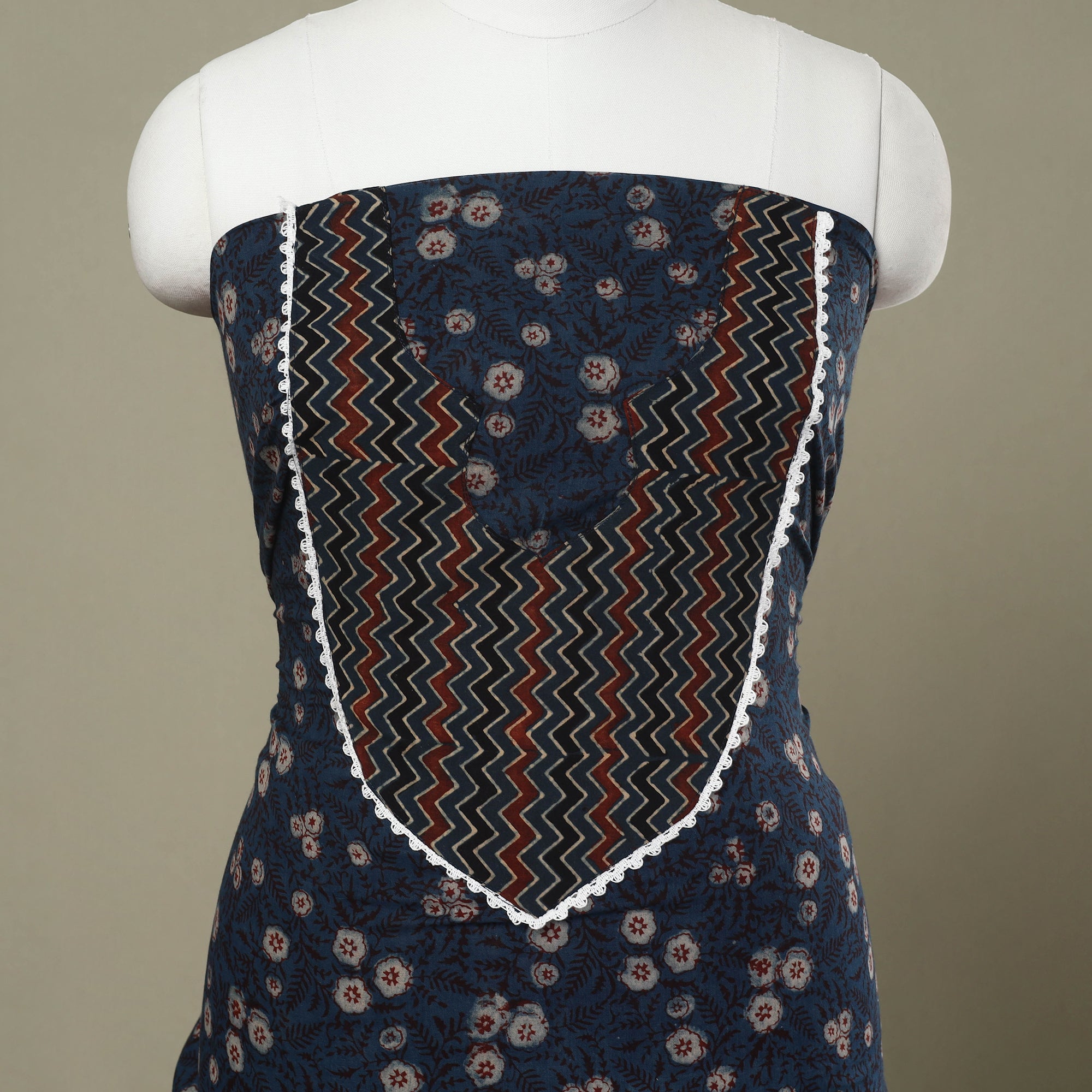 Add a touch of tradition to your wardrobe with this blue hand block print patchwork cotton kurta material. Crafted using the traditional block printing technique, this fabric features vibrant patterns. Made from soft, breathable cotton, it combines comfort with style, making it perfect for creating custom kurtas that showcase both cultural charm and modern elegance.