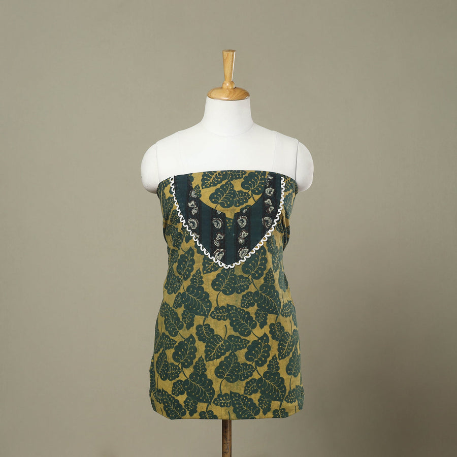 Add a touch of tradition to your wardrobe with this green hand block print patchwork cotton kurta material. Crafted using the traditional block printing technique, this fabric features vibrant patterns. Made from soft, breathable cotton, it combines comfort with style, making it perfect for creating custom kurtas that showcase both cultural charm and modern elegance.